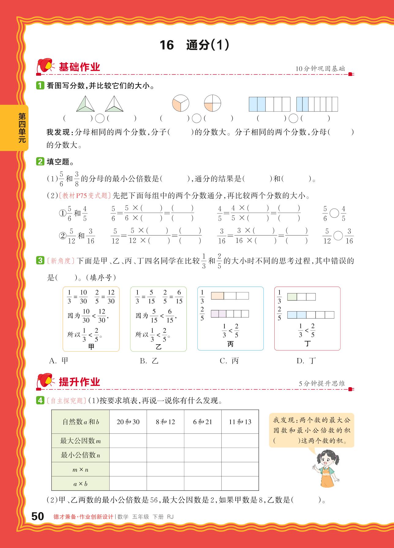 2024春下册五年级数学人教版 第四单元 分数的意义和性质——16. 通分(1)