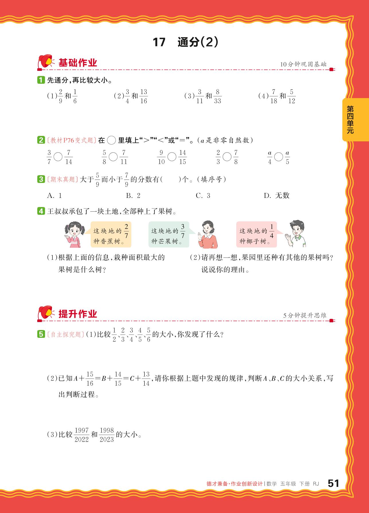 2024春下册五年级数学人教版 第四单元 分数的意义和性质——17. 通分(2)