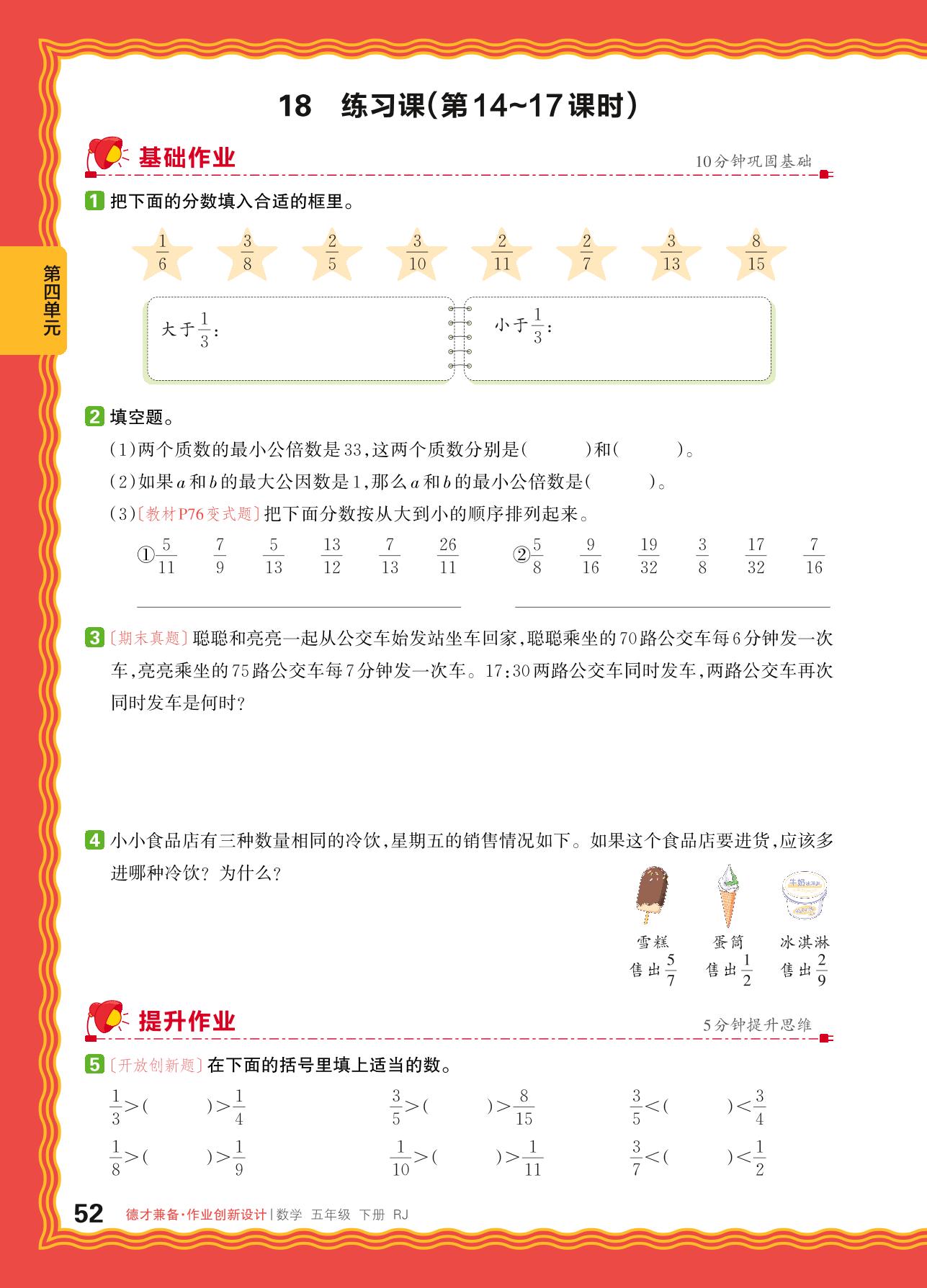 2024春下册五年级数学人教版 第四单元 分数的意义和性质——最小公倍数、通分练习课