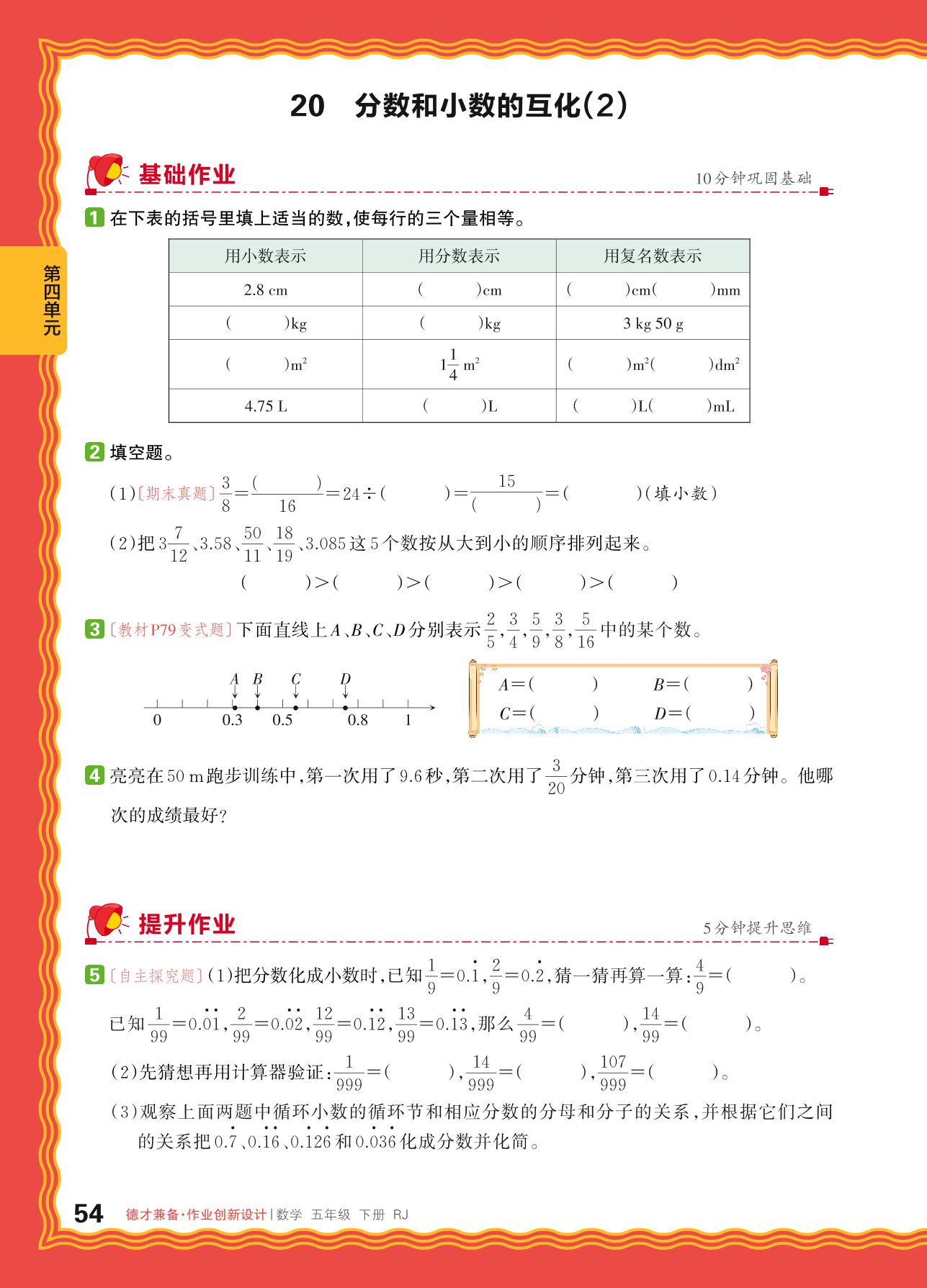2024春下册五年级数学人教版 第四单元 分数的意义和性质——20. 分数和小数的互化(2)