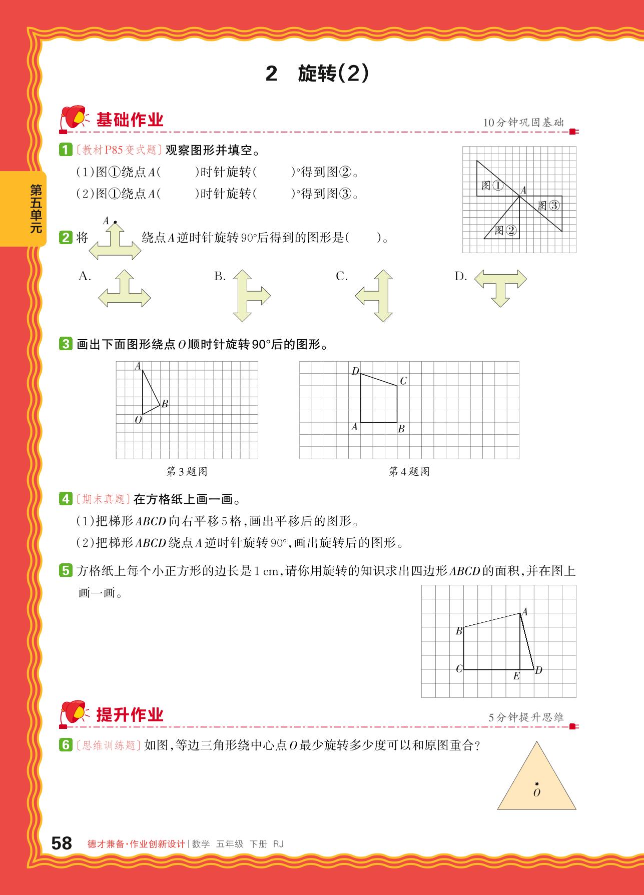 2024春下册五年级数学人教版 第五单元 图形的运动(三)——2. 旋转(2)