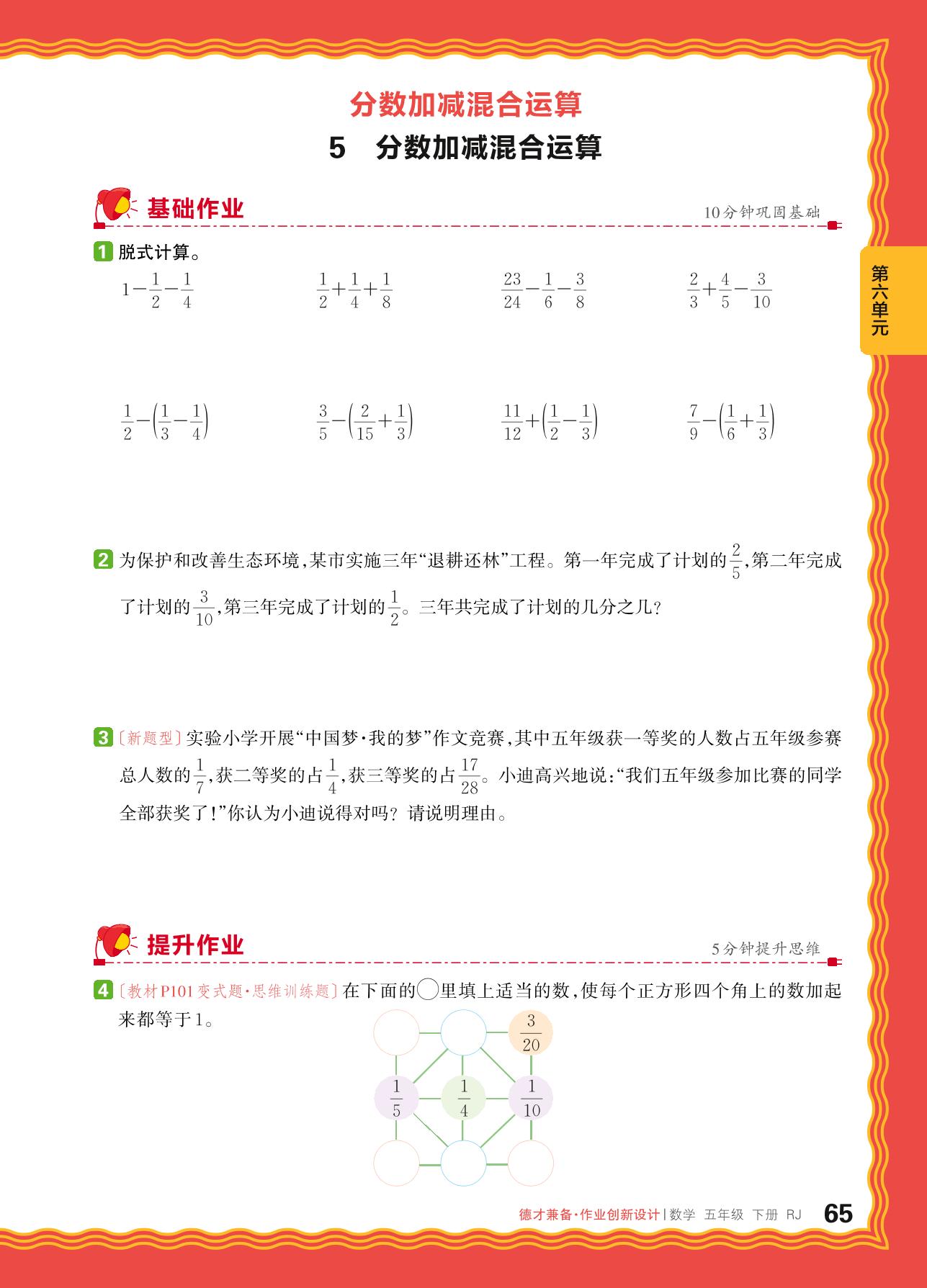 2024春下册五年级数学人教版 第六单元 分数的加法和减法——5. 分数加减混合运算