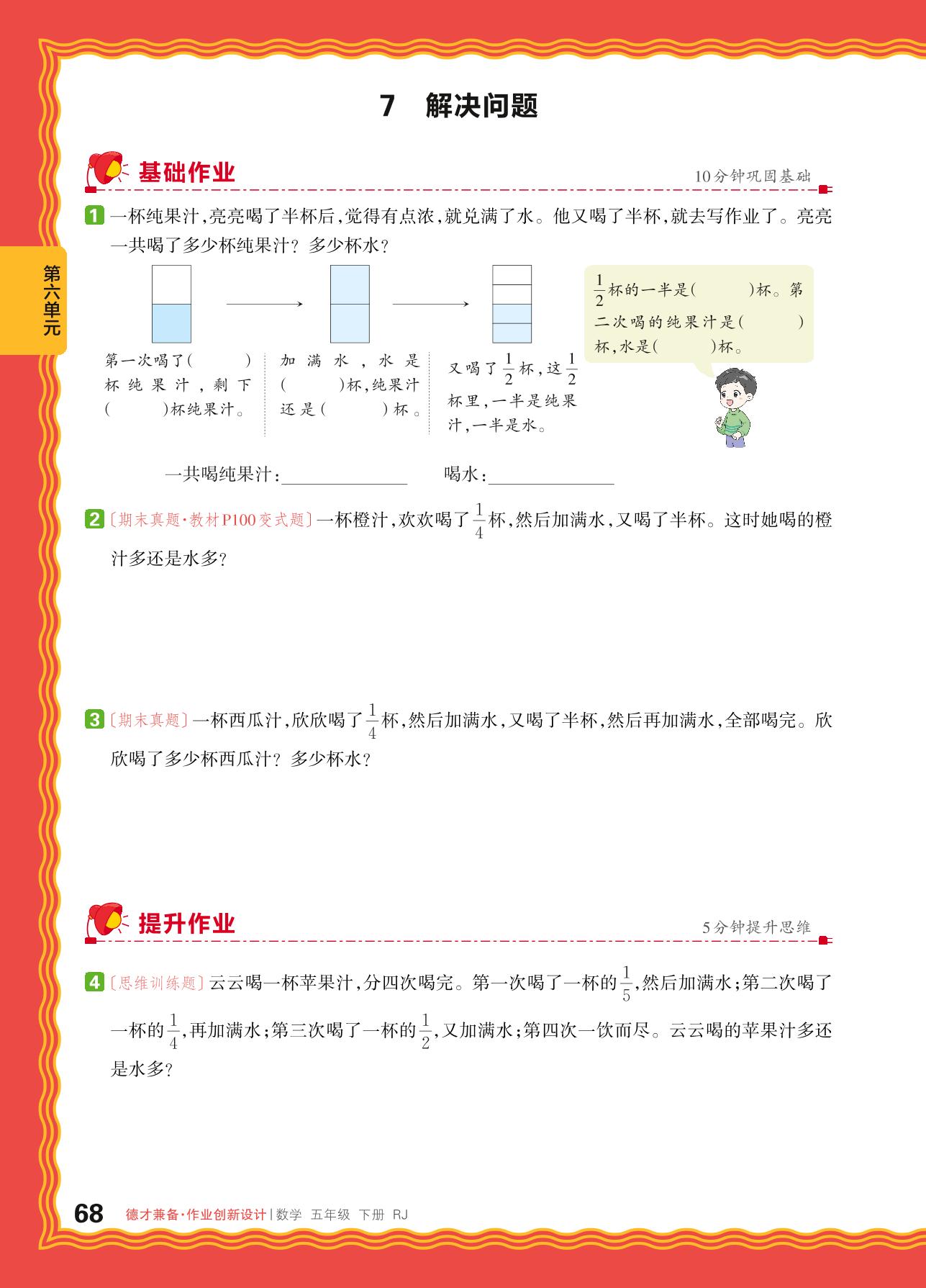 2024春下册五年级数学人教版 第六单元 分数的加法和减法——7. 解决问题