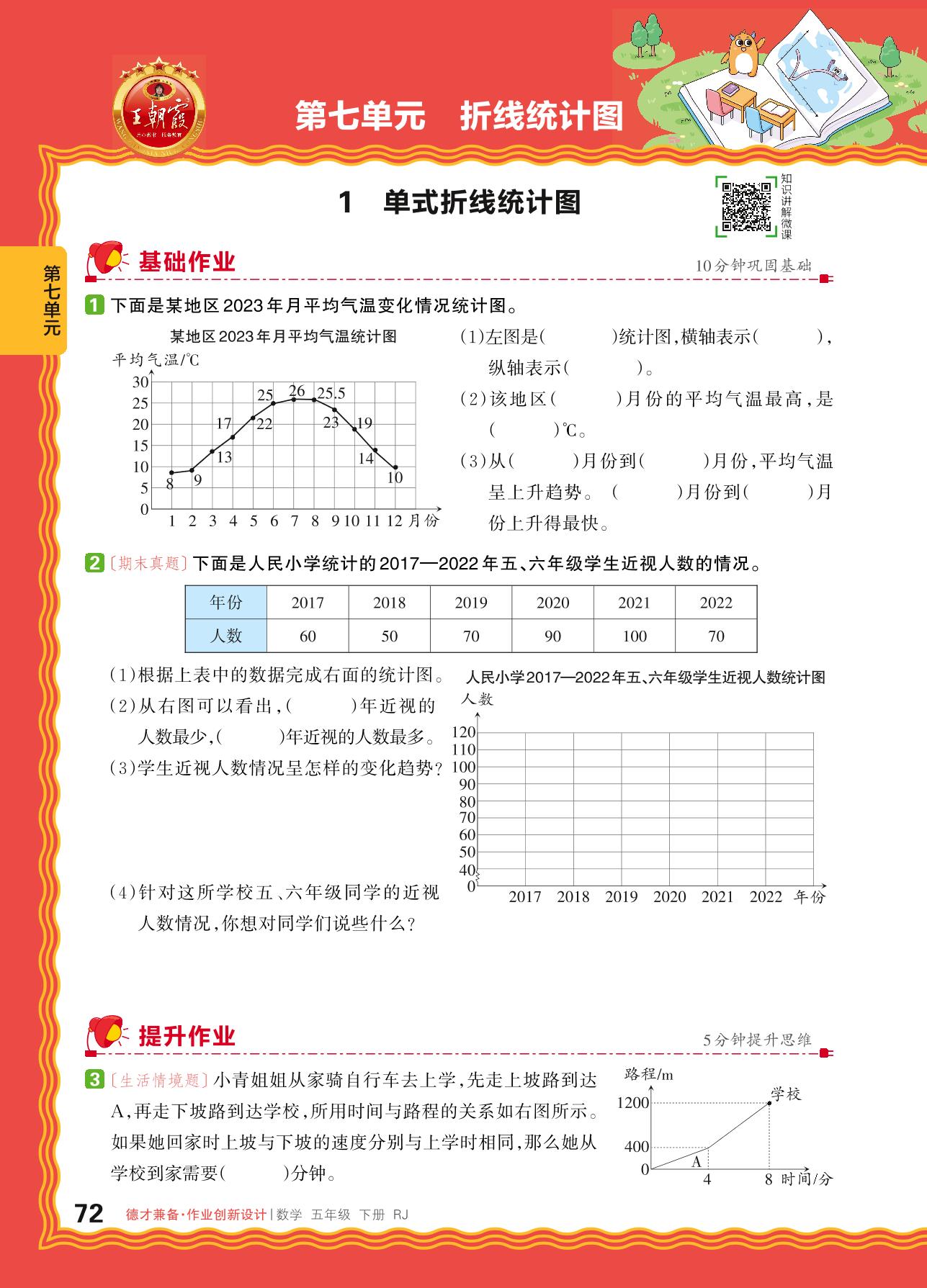 2024春下册五年级数学人教版 第七单元 折线统计图——1. 单式折线统计图