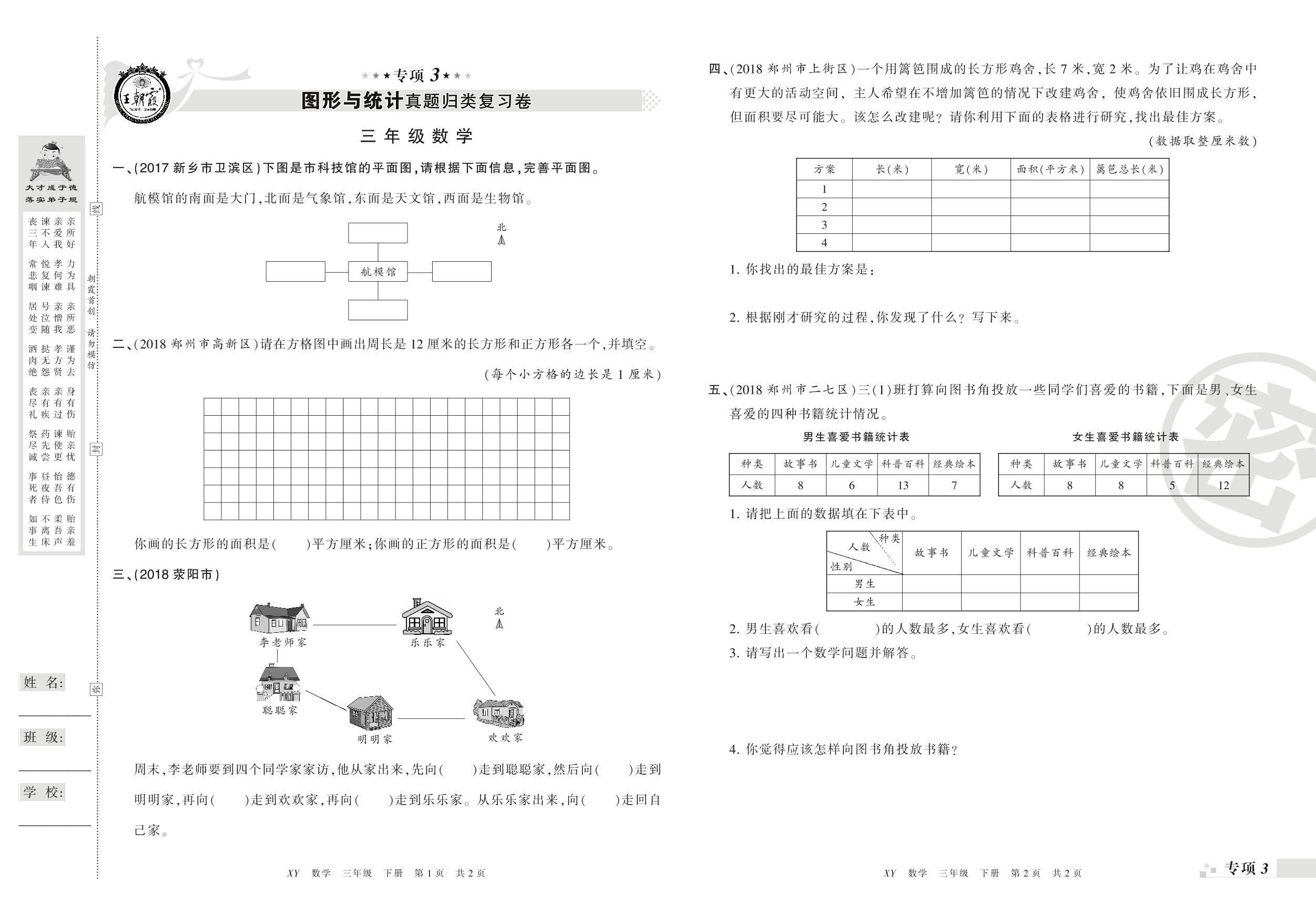 王朝霞期末专项卷——图形与统计、解决问题真题归类复习卷三年级下册数学(人教版)_R210804100122【0】