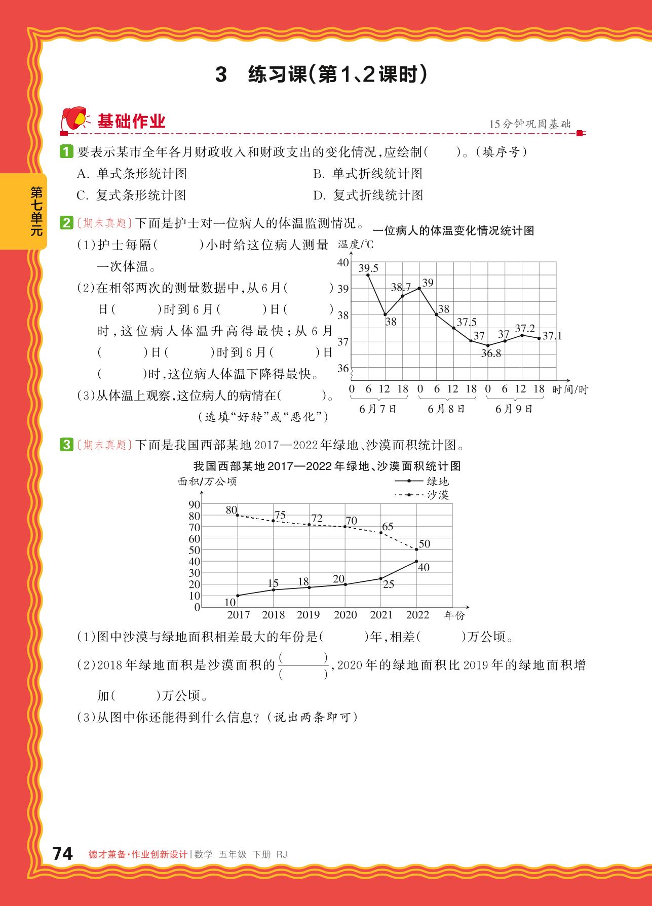2024春下册五年级数学人教版 第七单元折线统计图练习课