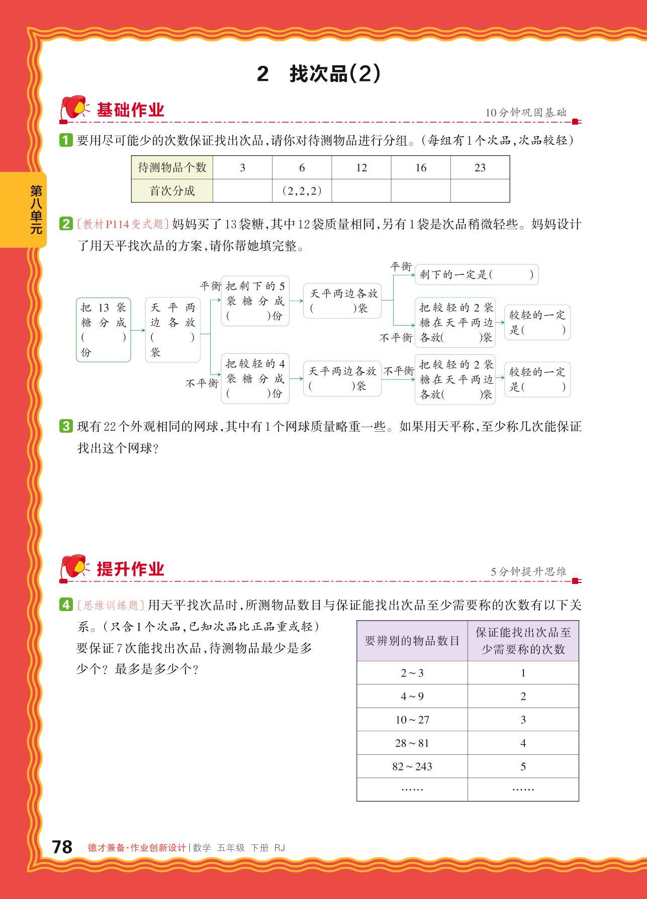 2024春下册五年级数学人教版 第八单元 数学广角 找次品——2. 找次品(2)