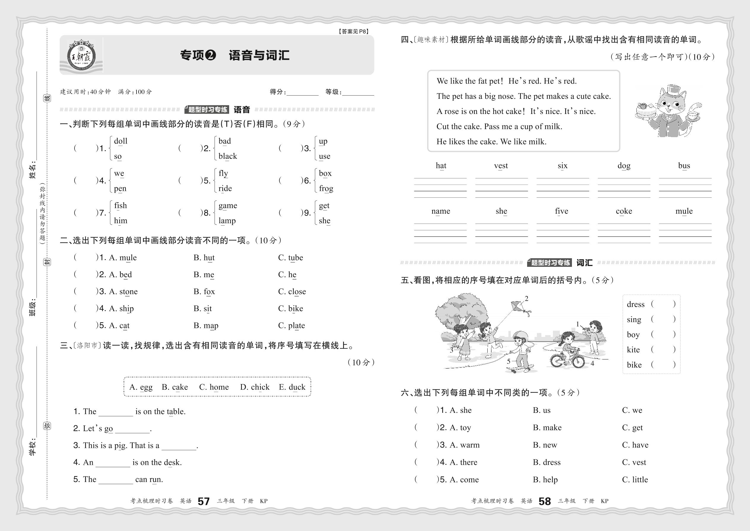 2024春下册三年级英语科普版 期末专项卷KD版·语音与词汇【2】