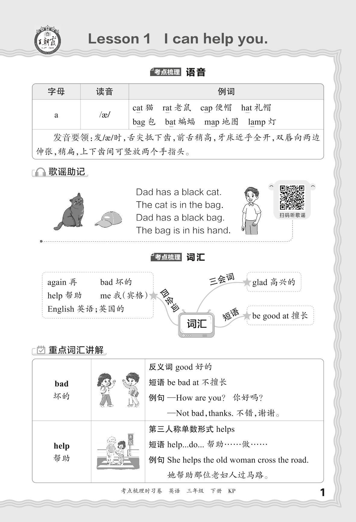 2024春下册三年级英语科普版 考点梳理手册——Lesson 1 I can help you.