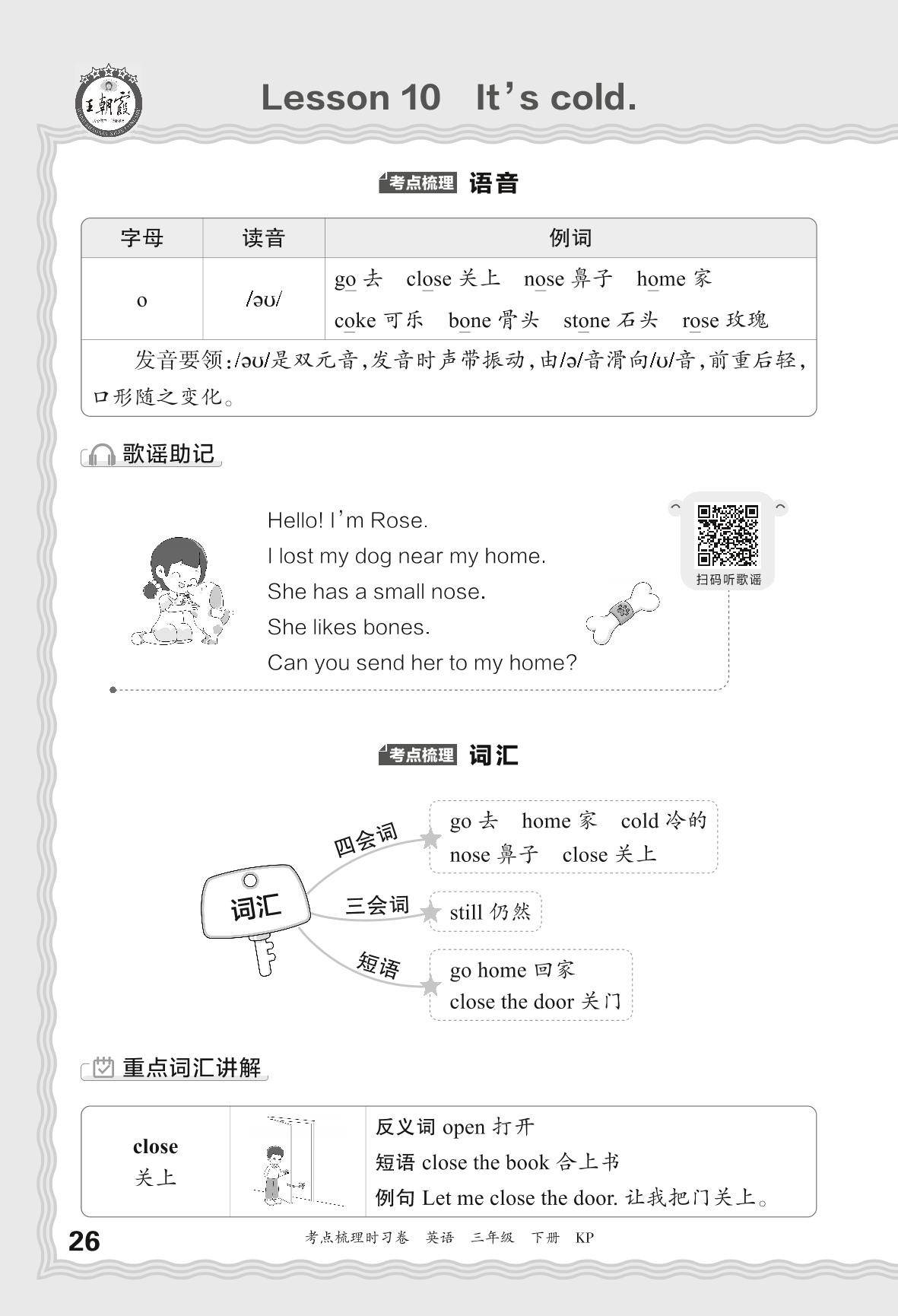 2024春下册三年级英语科普版 考点梳理手册——Lesson 10 It’s cold.