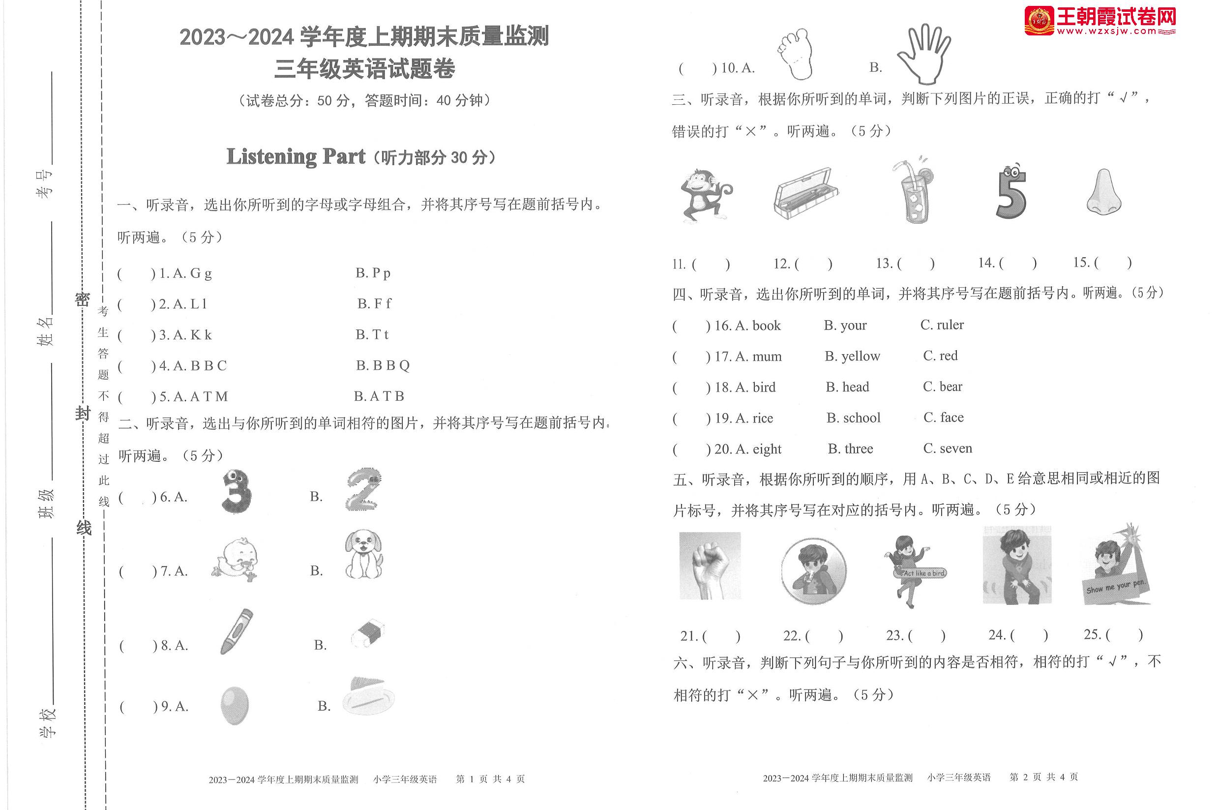 重庆市大足区2023-2024学年度上学期期末质量监测试题卷三年级英语(人教PEP版)【无听力音频】
