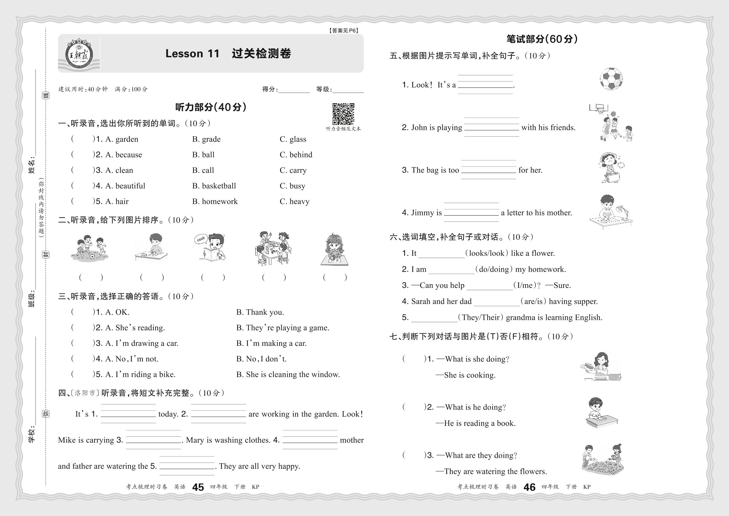 2024春下册四年级英语科普版 Lesson 11 过关检测卷