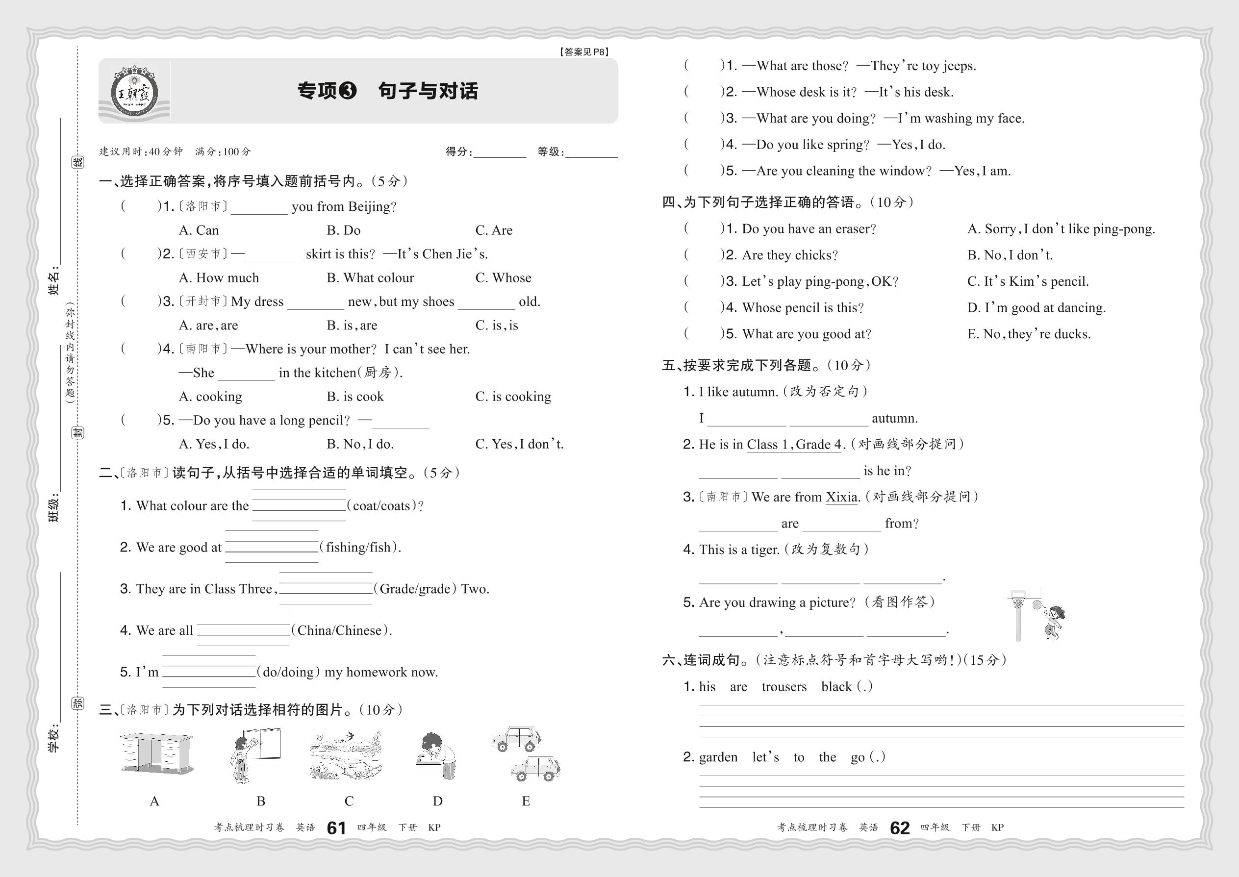 2024春下册四年级英语科普版 期末专项卷KD版·句子与对话【3】