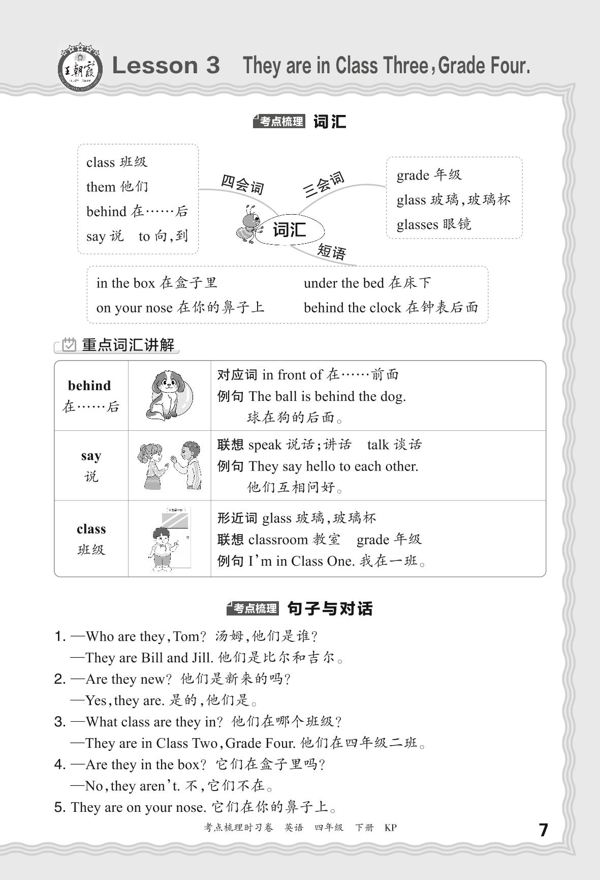 2024春下册四年级英语科普版 考点梳理手册——Lesson 3 They are in Class Three,Grade Four.