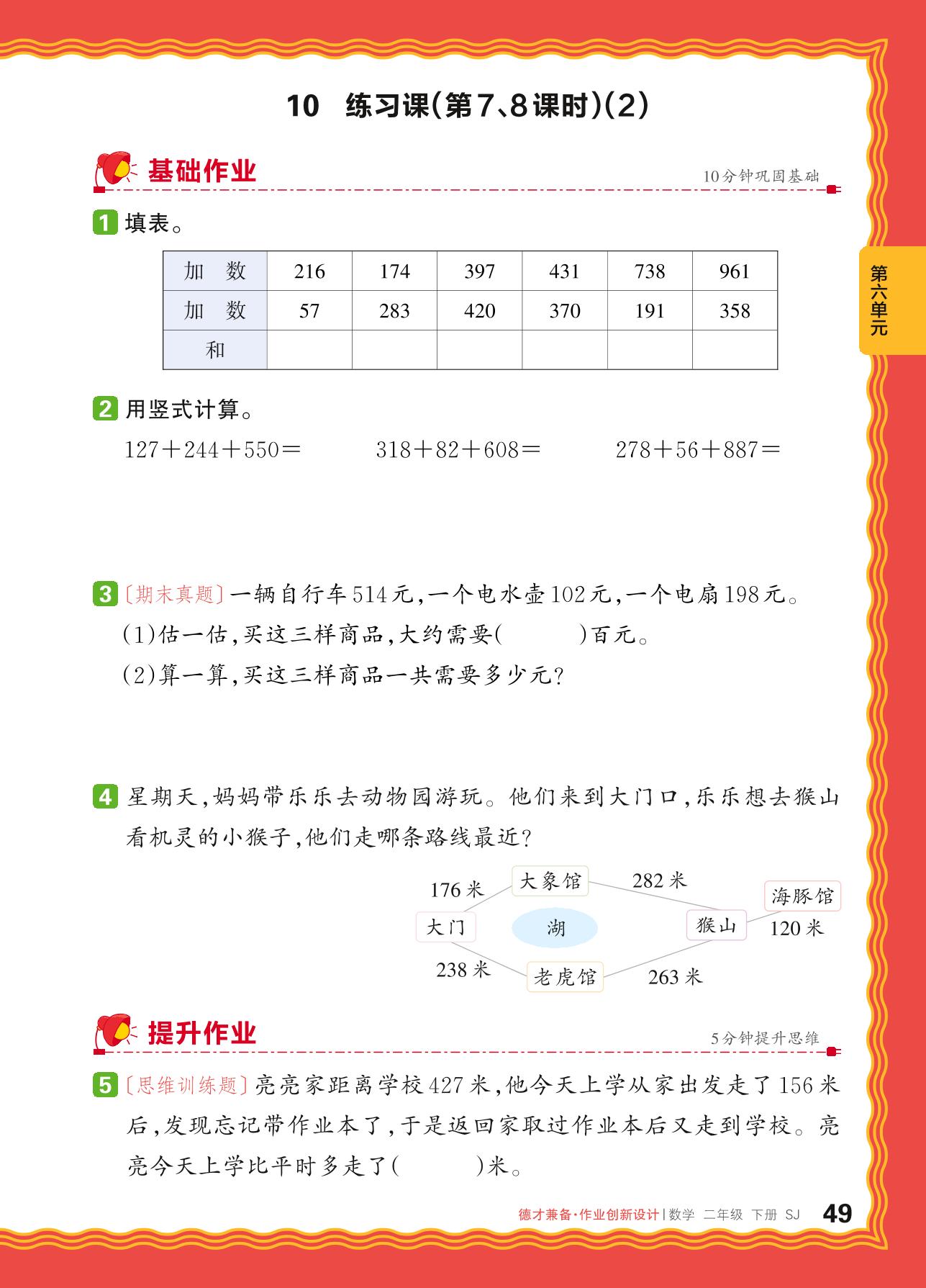 2024春下册二年级数学苏教版 第六单元 两、三位数的加法和减法——三位数加法的笔算练习课(2)_R240124101408311