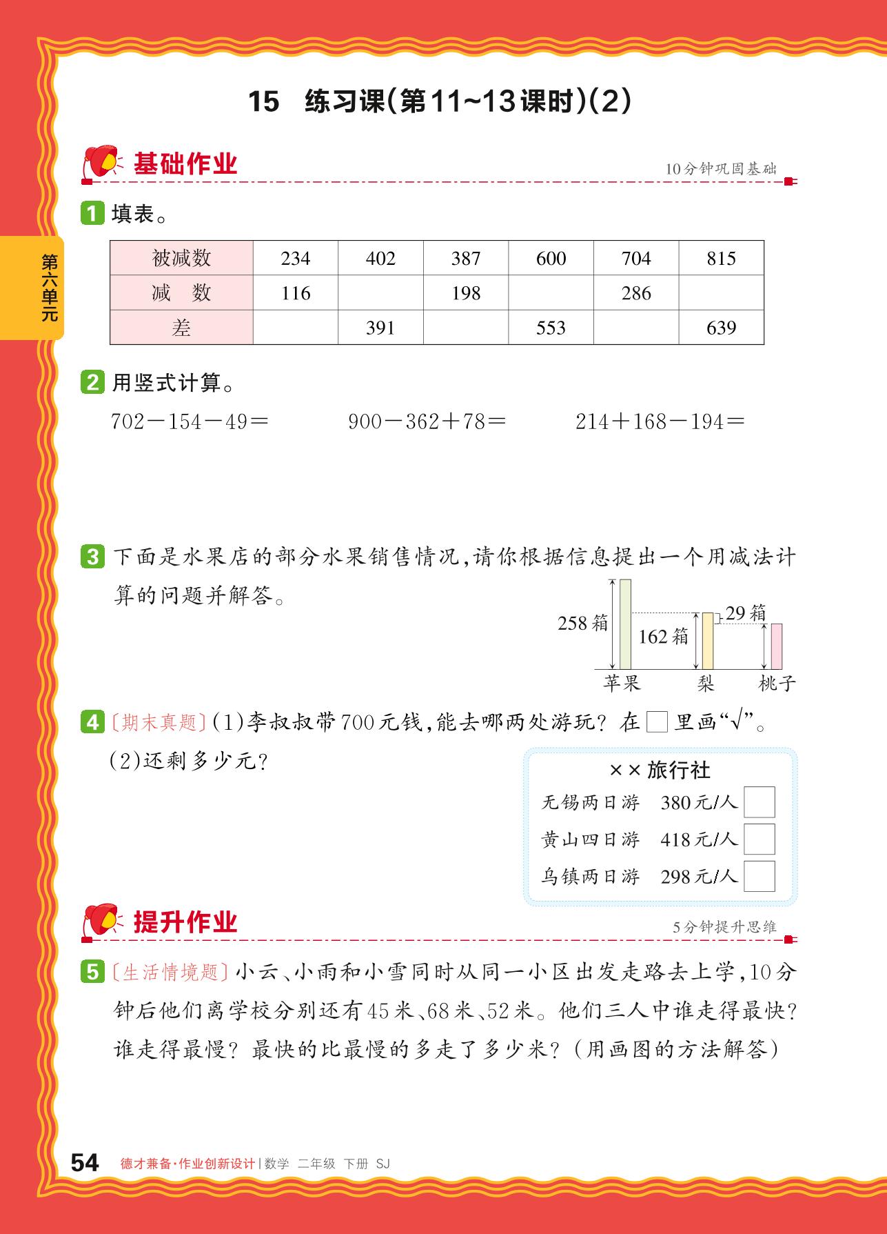 2024春下册二年级数学苏教版 第六单元 两、三位数的加法和减法——三位数减法的笔算练习课(2)_R240124101420504