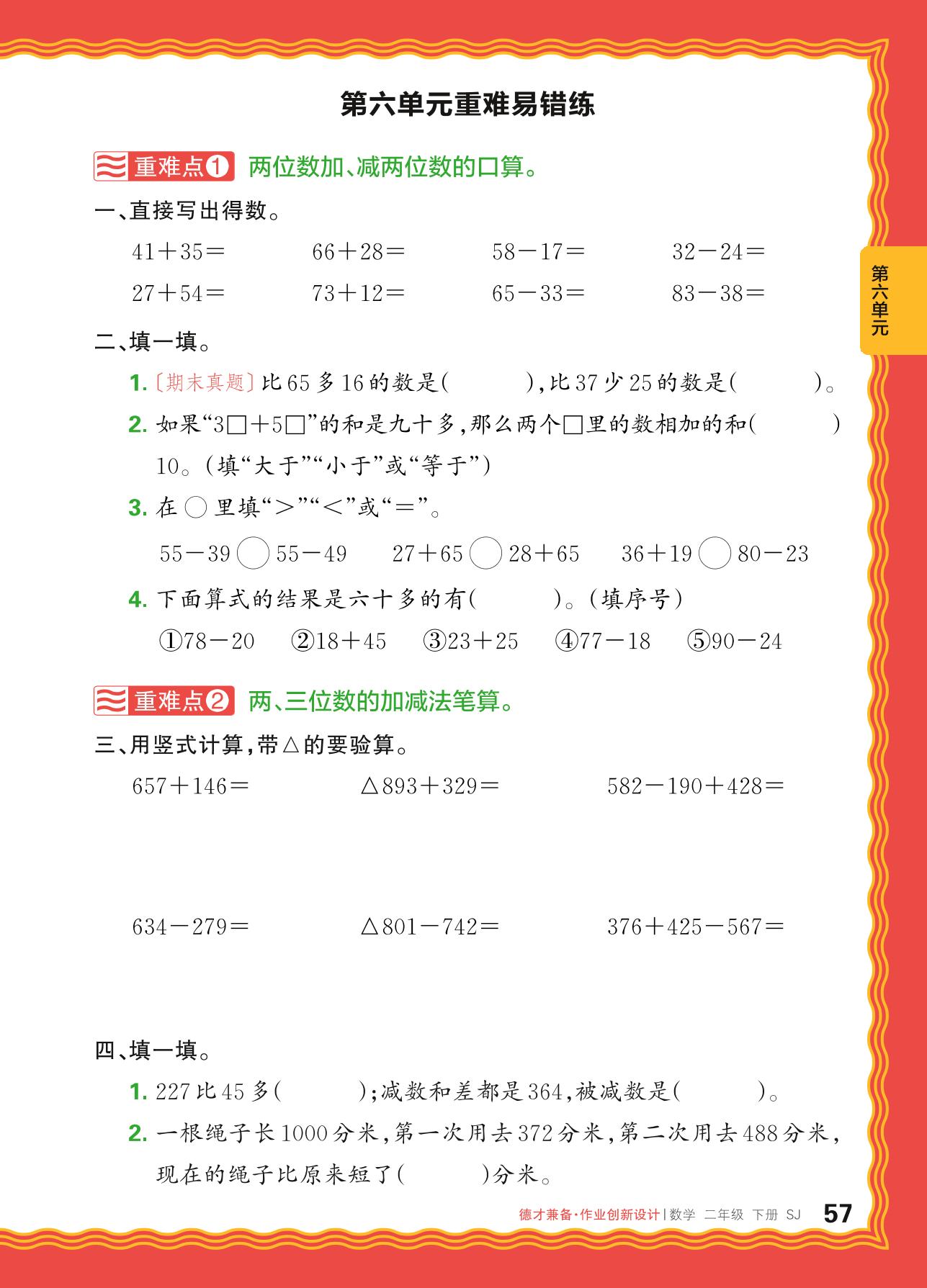 2024春下册二年级数学苏教版 第六单元重难易错练
