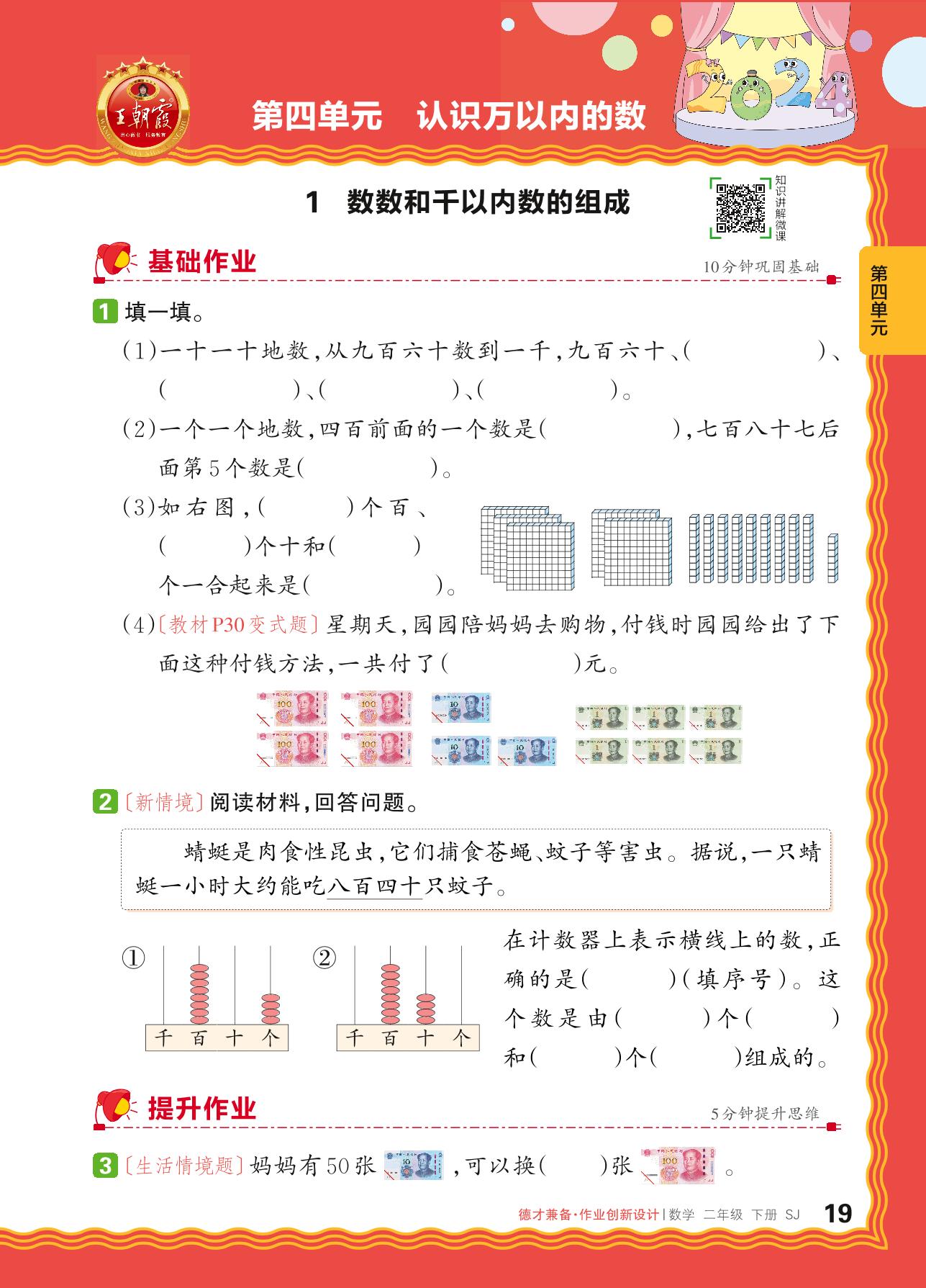 2024春下册二年级数学苏教版 第四单元 认识万以内的数——1. 数数和千以内数的组成