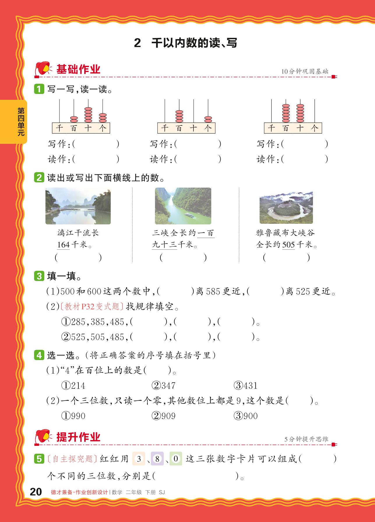 2024春下册二年级数学苏教版 第四单元 认识万以内的数——2. 千以内数的读、写