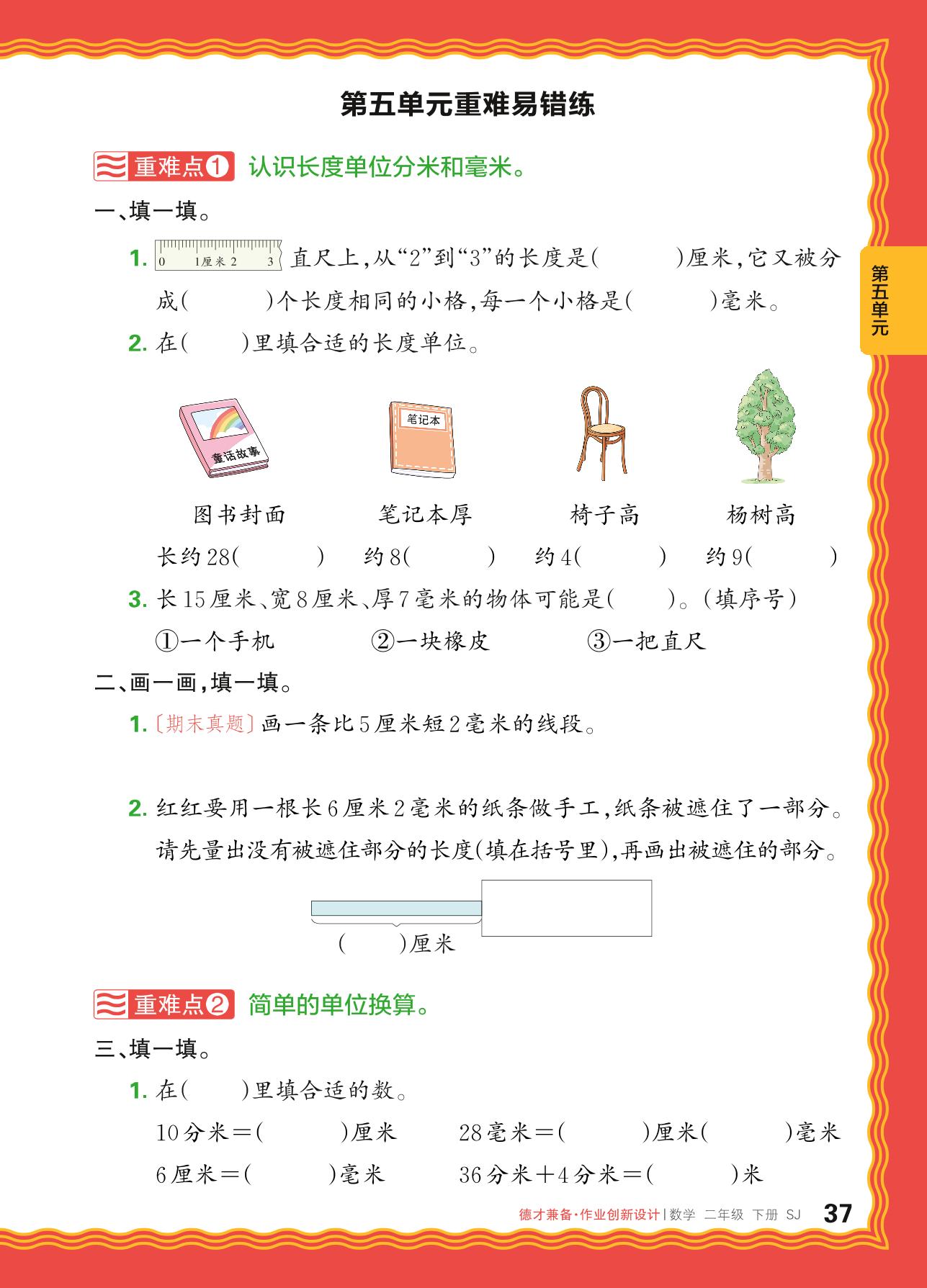 2024春下册二年级数学苏教版 第五单元重难易错练