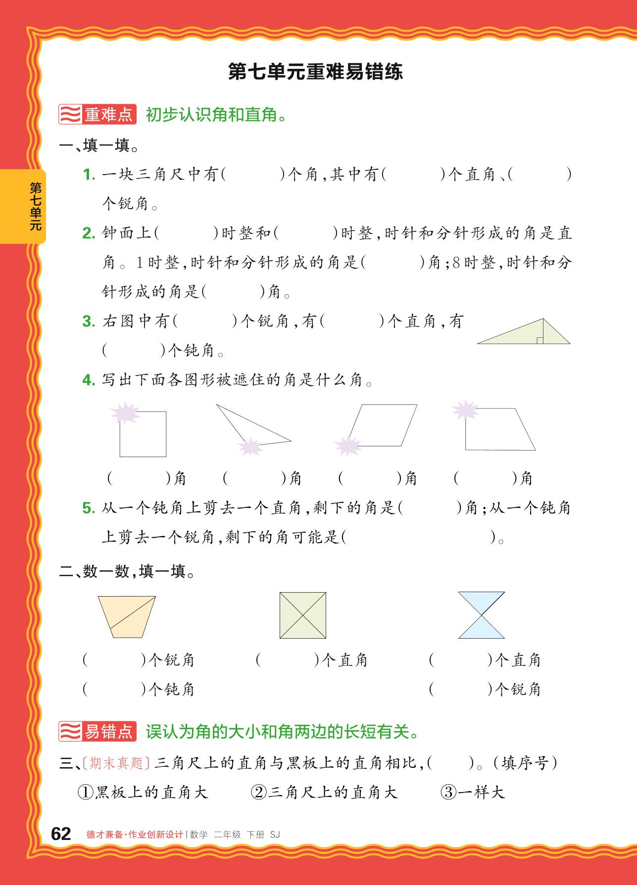2024春下册二年级数学苏教版 第七单元重难易错练