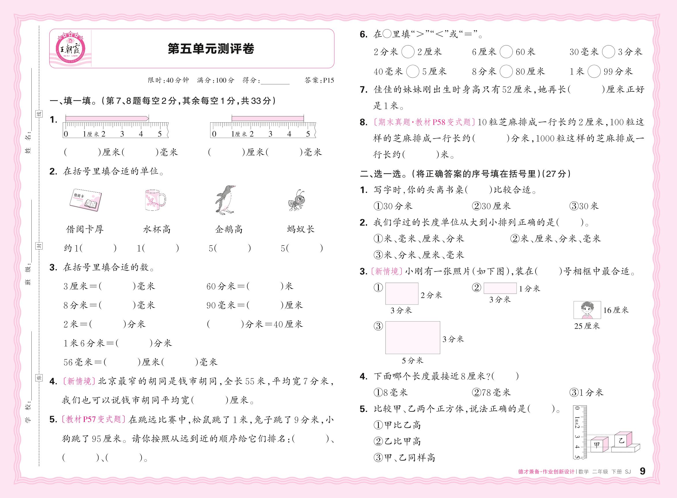 2024春下册二年级数学苏教版 第五单元测评卷