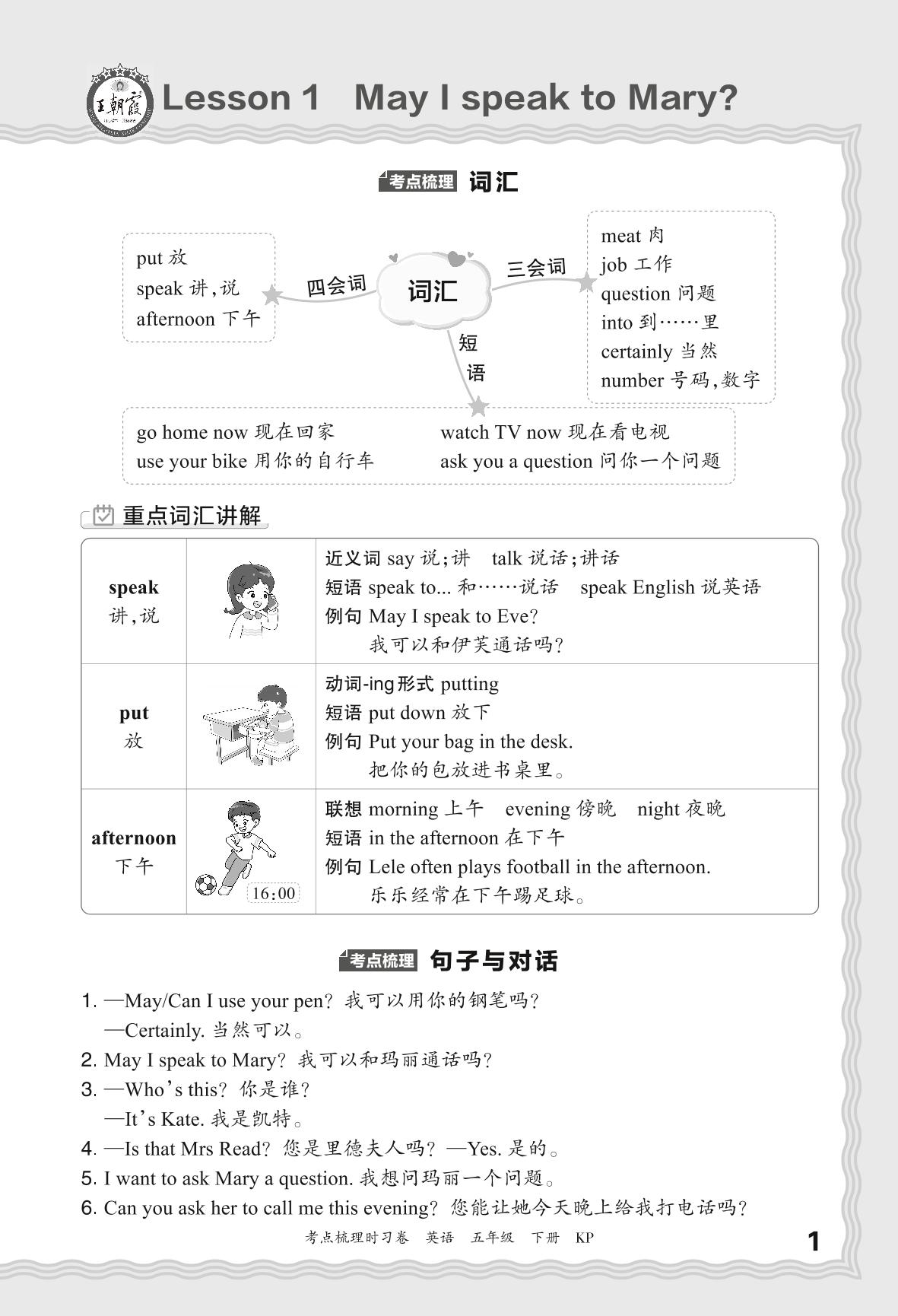 2024春下册五年级英语科普版 考点梳理手册——Lesson 1 May I speak to Mary?