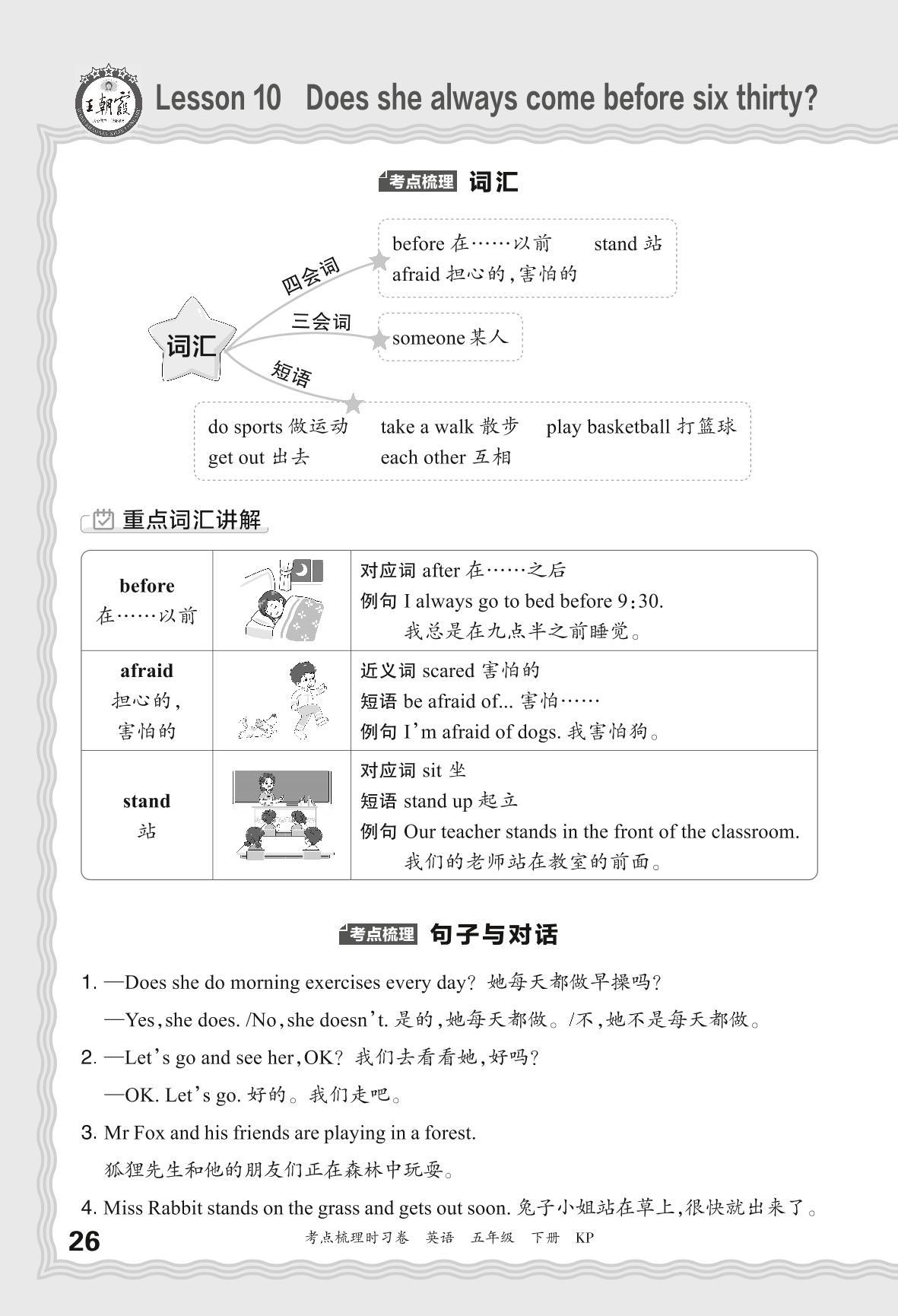 2024春下册五年级英语科普版 考点梳理手册——Lesson 10 Does she always come before six thirty?
