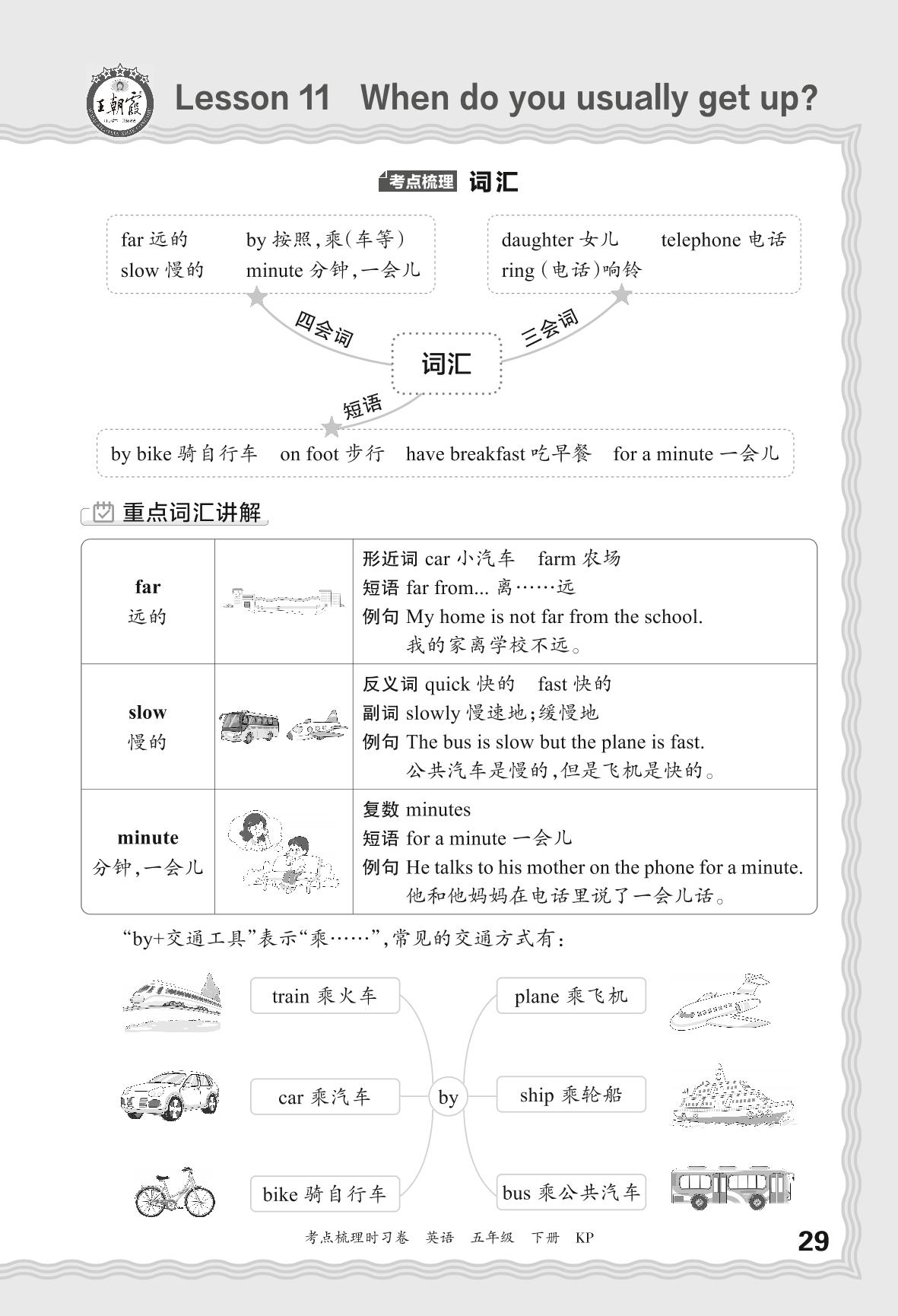 2024春下册五年级英语科普版 考点梳理手册——Lesson 11 When do you usually get up?