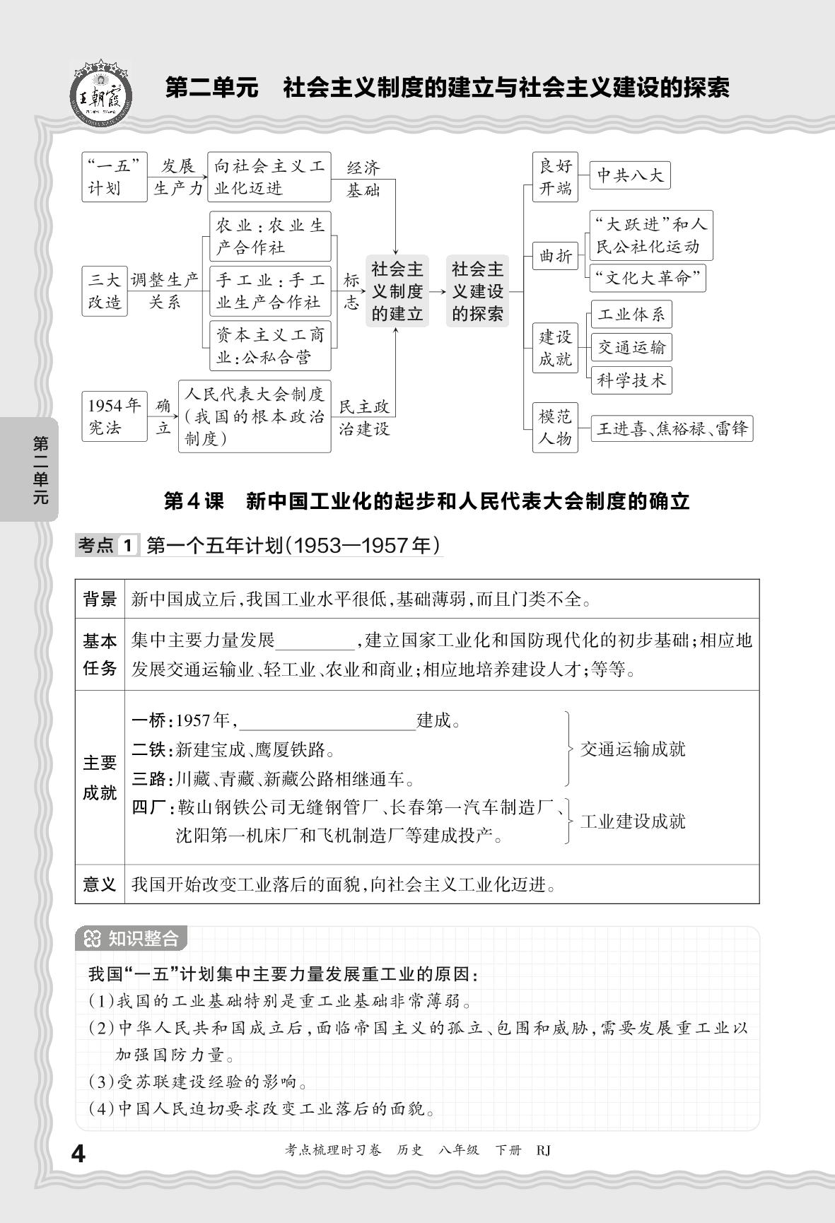 2024春下册八年级历史人教版 考点梳理手册——第二单元 社会主义制度的建立与社会主义建设的探索