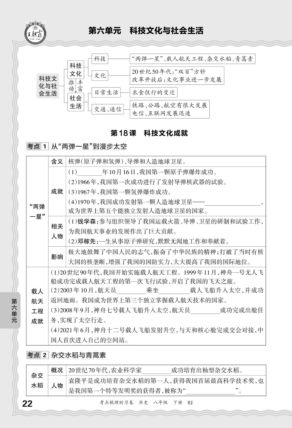 2024春下册八年级历史人教版 考点梳理手册——第六单元 科技文化与社会生活