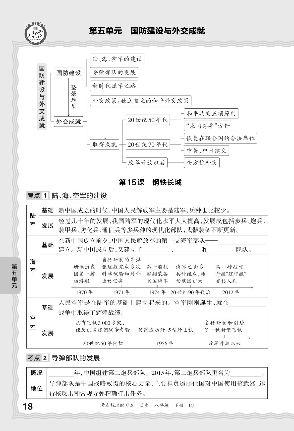 2024春下册八年级历史人教版 考点梳理手册——第五单元 国防建设与外交成就