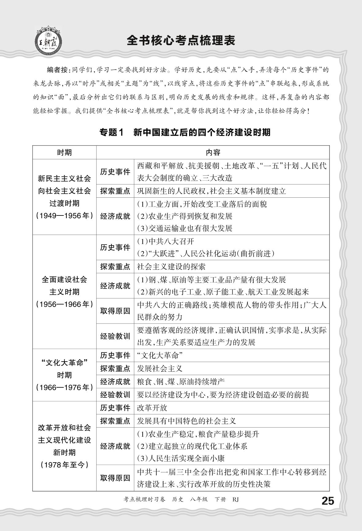 2024春下册八年级历史人教版 考点梳理手册——全书核心考点梳理表