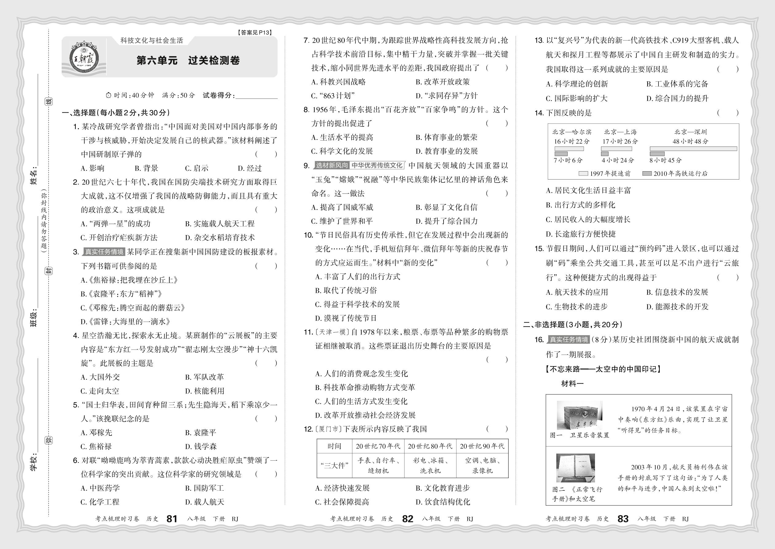 八年级历史人教版下册单元卷