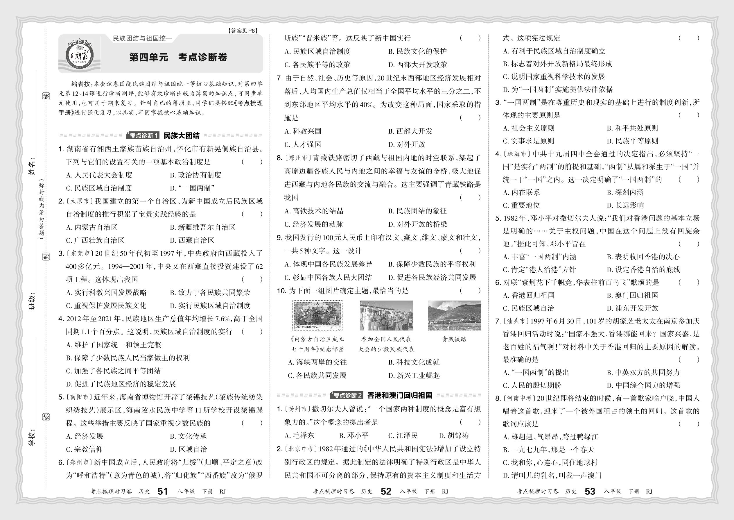 2024春下册八年级历史人教版 第四单元 考点诊断卷