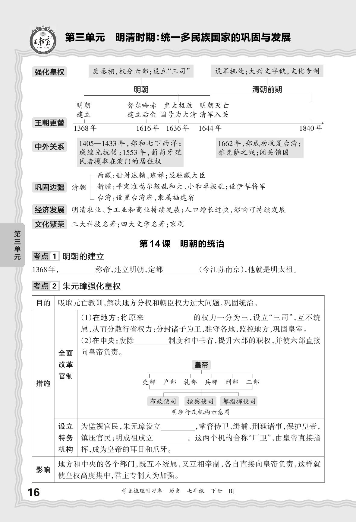 2024春下册七年级历史人教版 考点梳理手册——第三单元 明清时期:统一多民族国家的巩固与发展