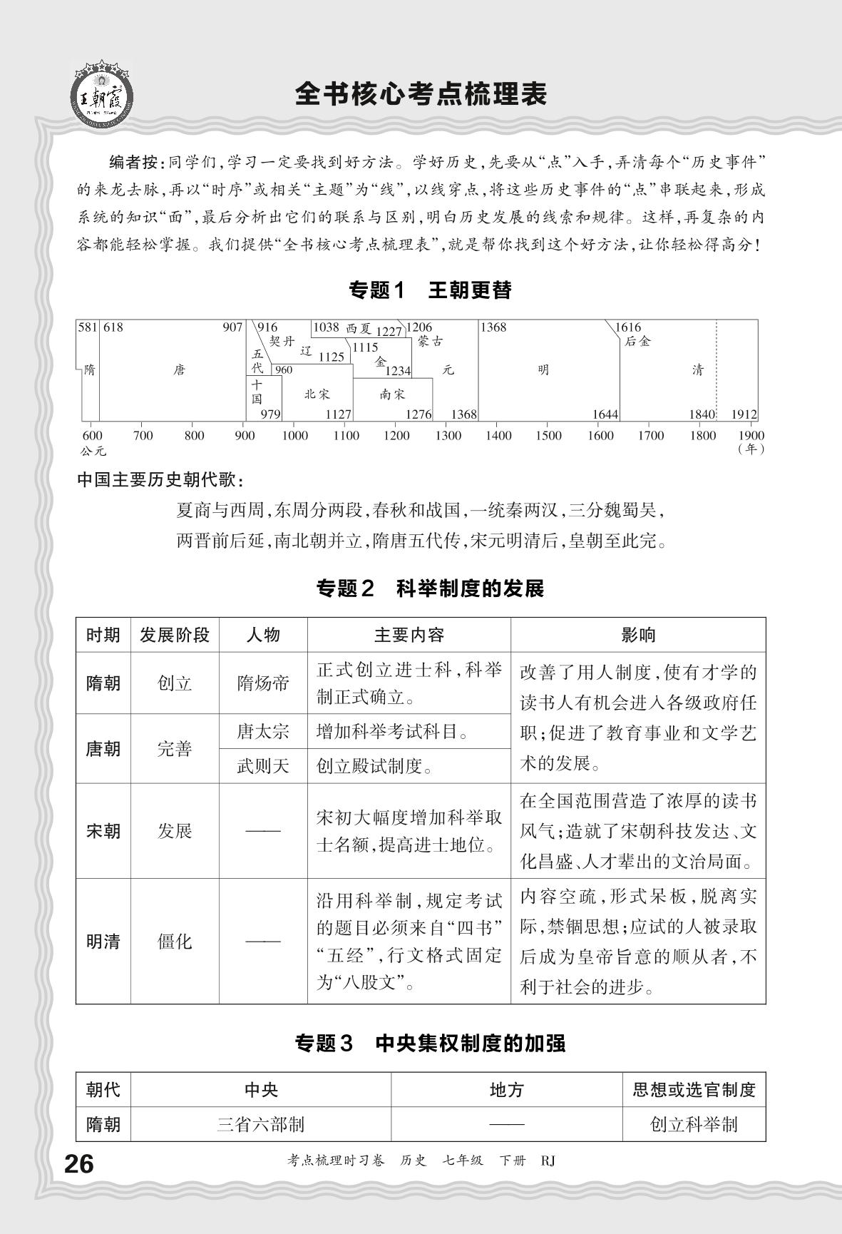 2024春下册七年级历史人教版 考点梳理手册——全书核心考点梳理表