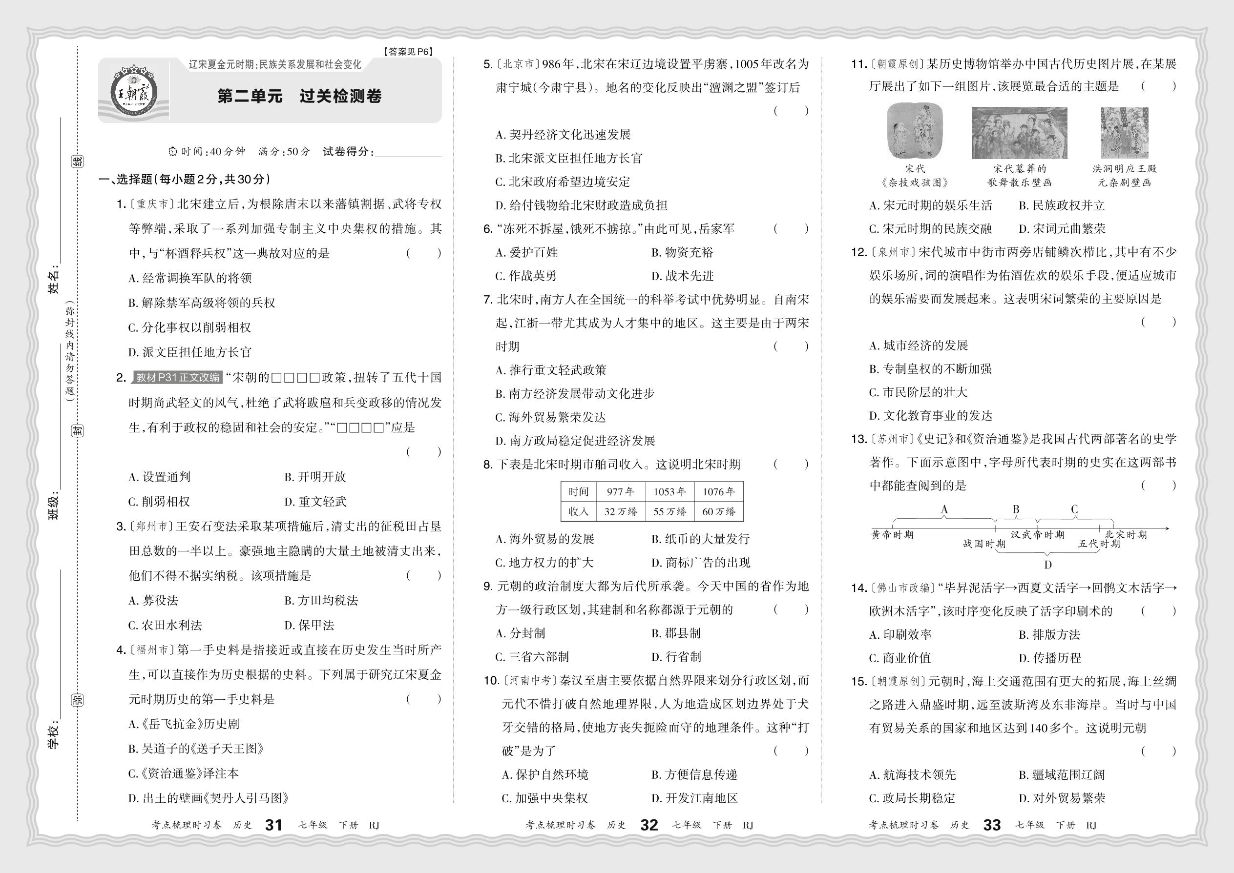 2024春下册七年级历史人教版 第二单元 过关检测卷