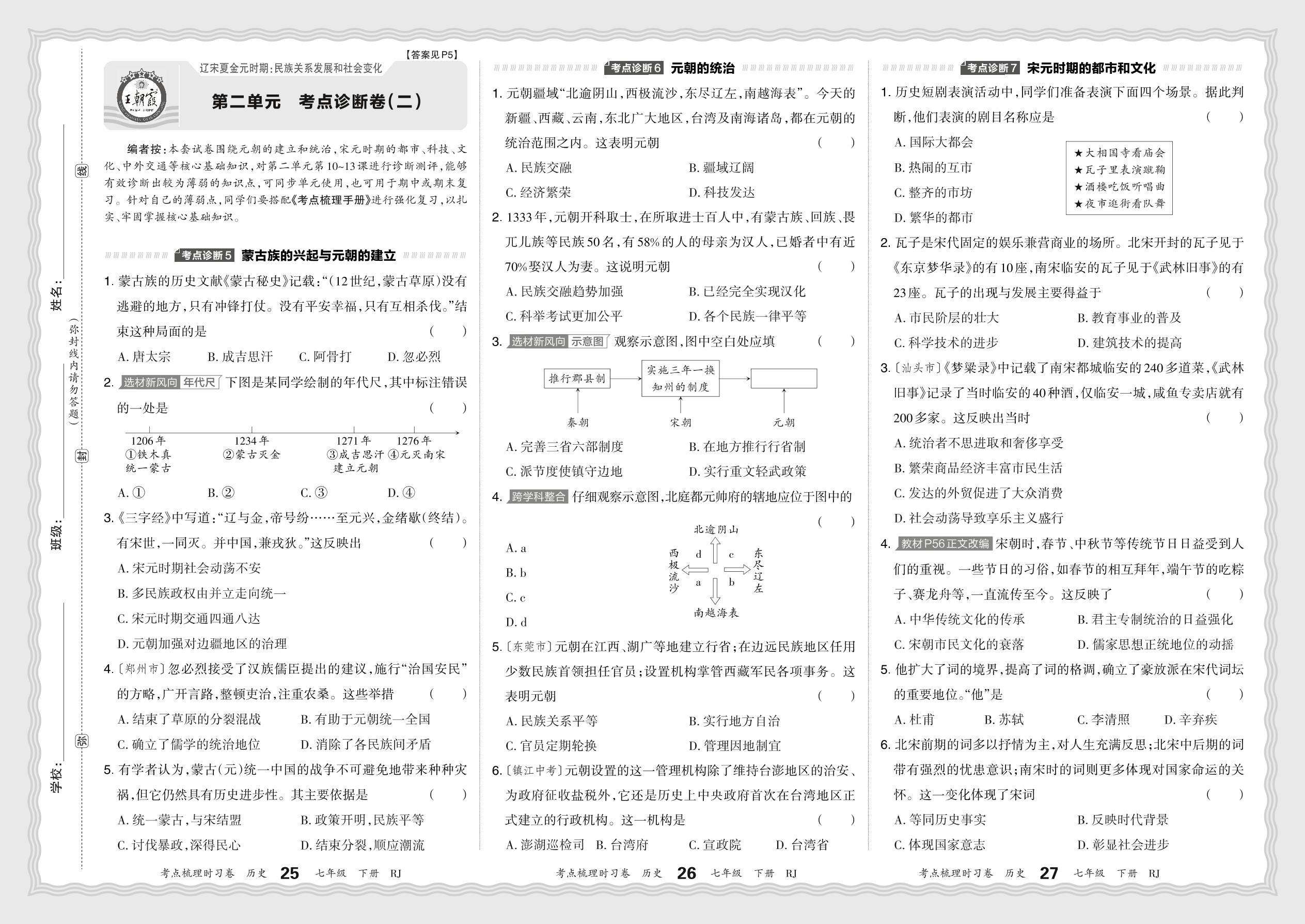 2024春下册七年级历史人教版 第二单元 考点诊断卷(二)