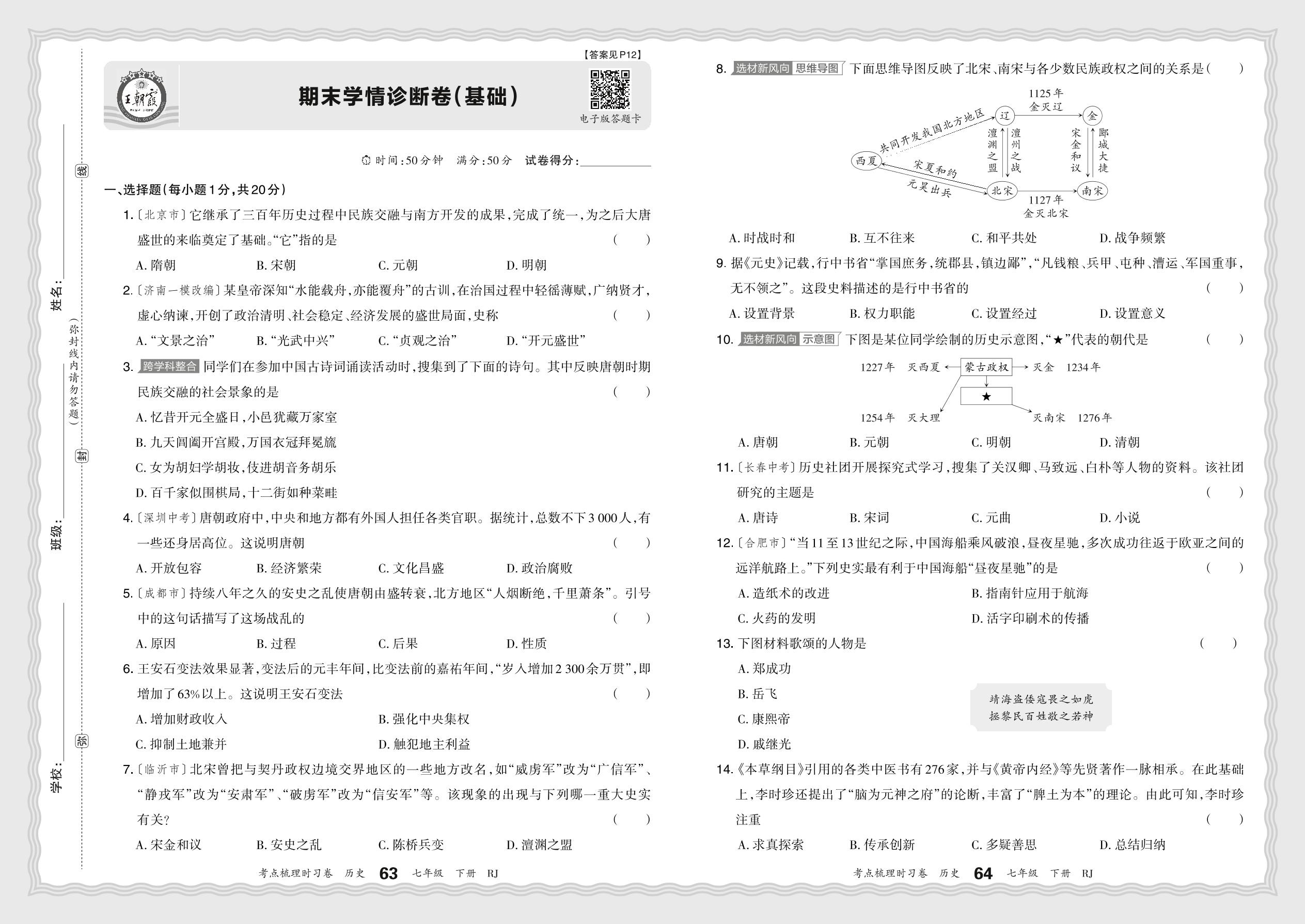 2024春下册七年级历史人教版 期末学情诊断卷(基础)