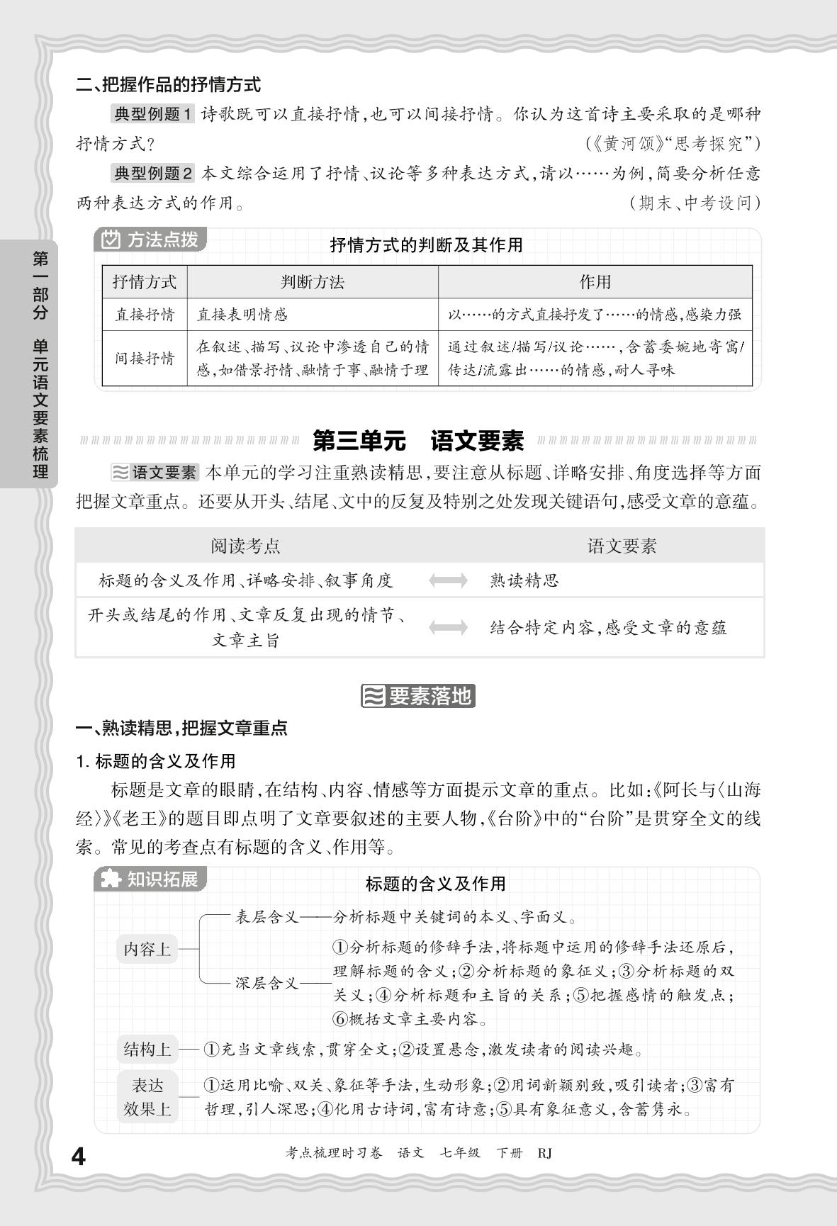 2024春下册七年级语文人教版 考点梳理手册——第三单元语文要素