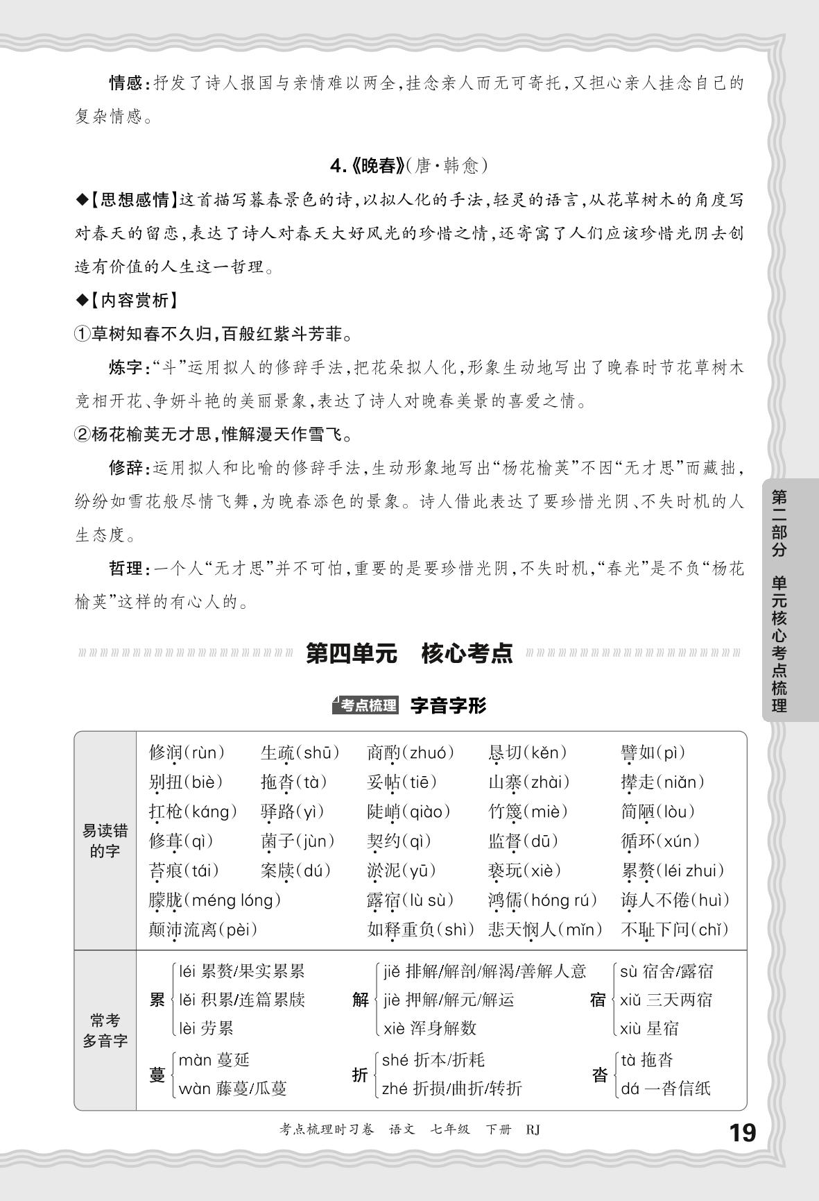 2024春下册七年级语文人教版 考点梳理手册——第四单元核心考点