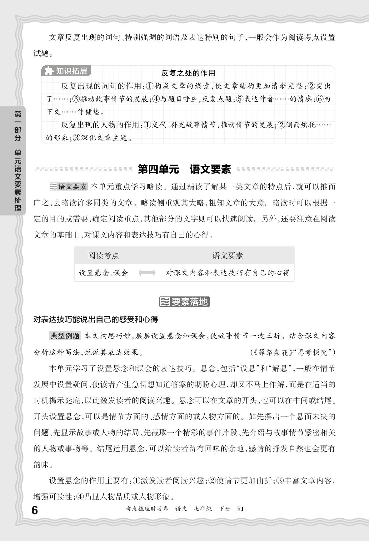 2024春下册七年级语文人教版 考点梳理手册——第四单元语文要素