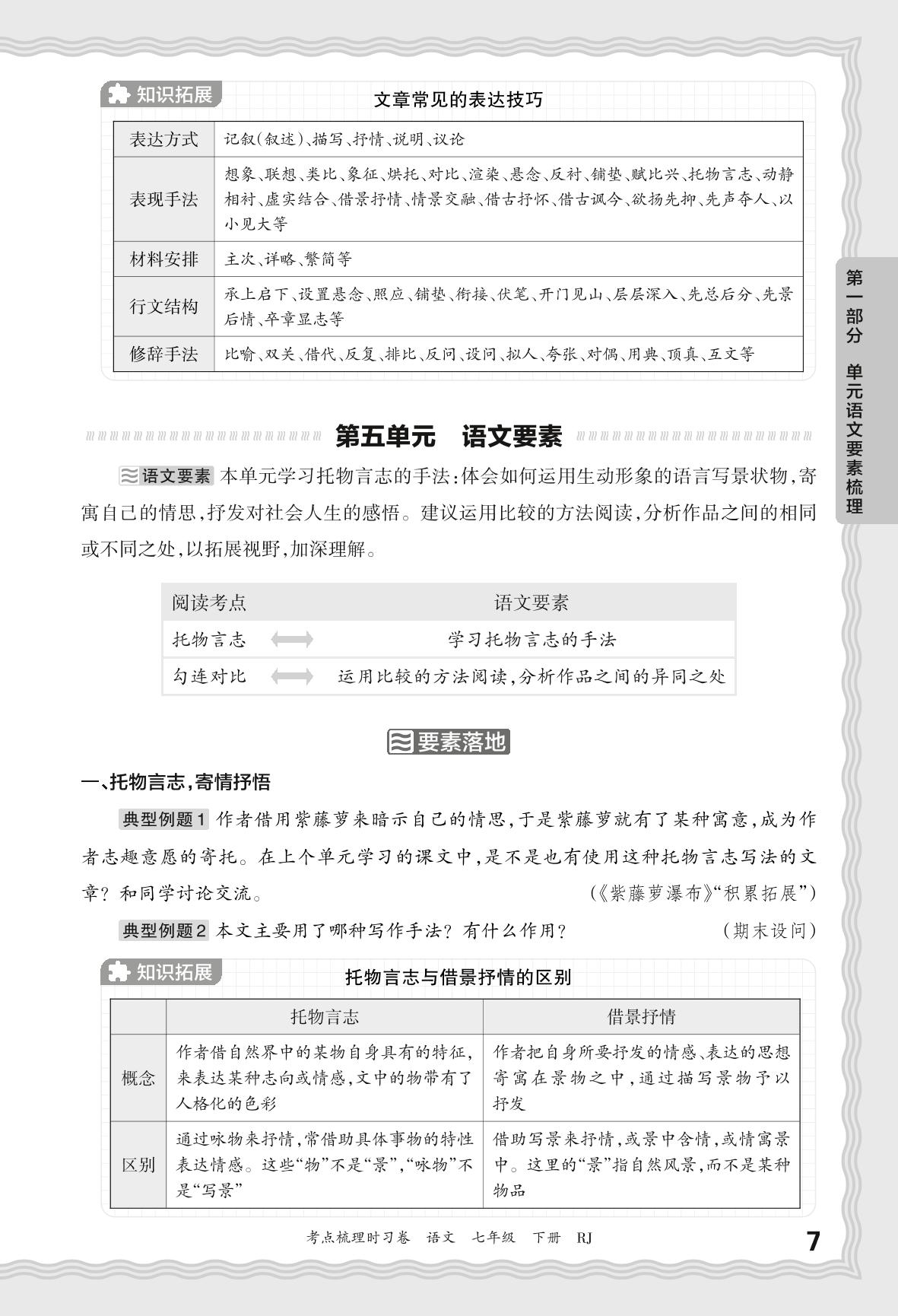 2024春下册七年级语文人教版 考点梳理手册——第五单元语文要素