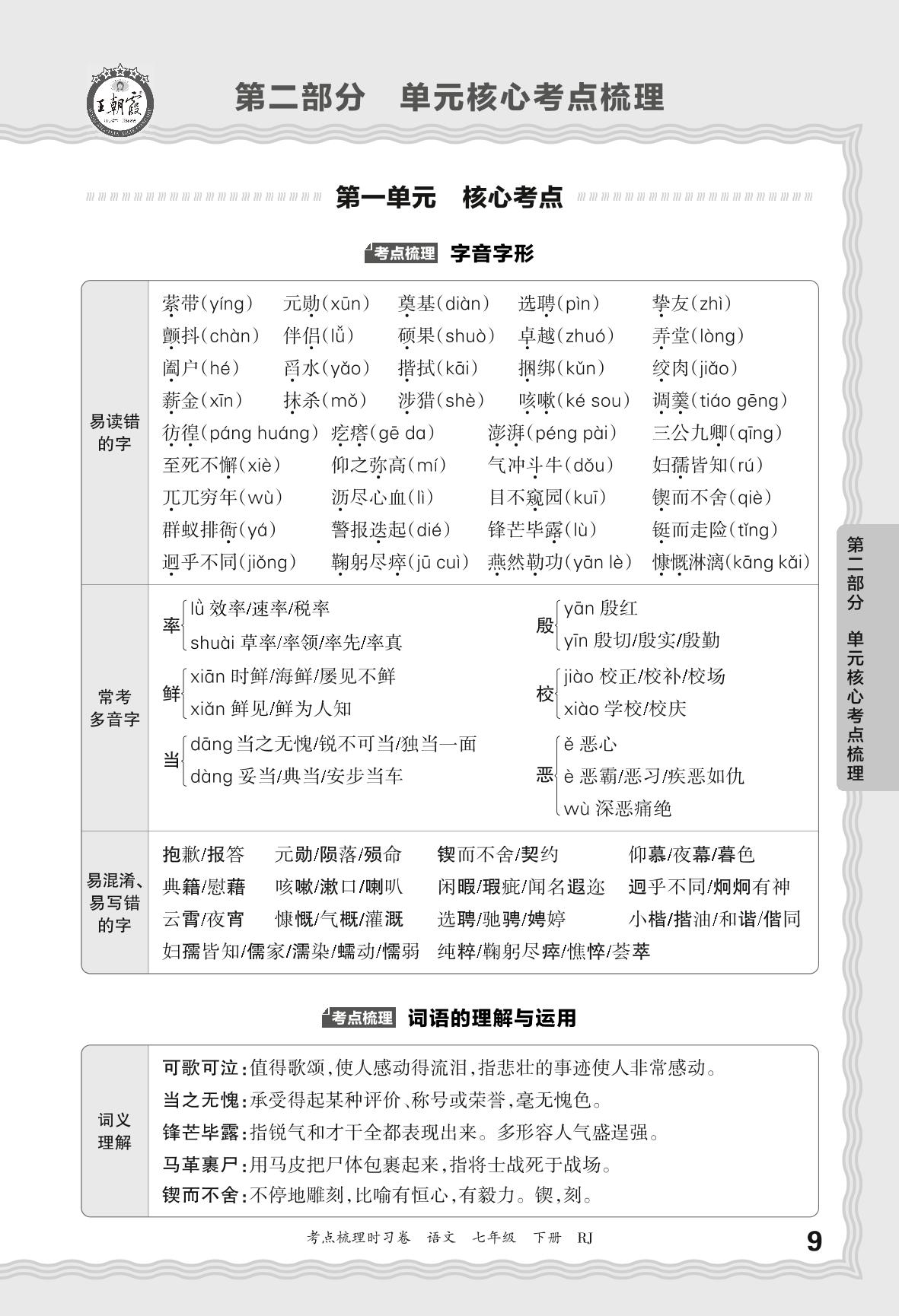 2024春下册七年级语文人教版 考点梳理手册——第一单元核心考点