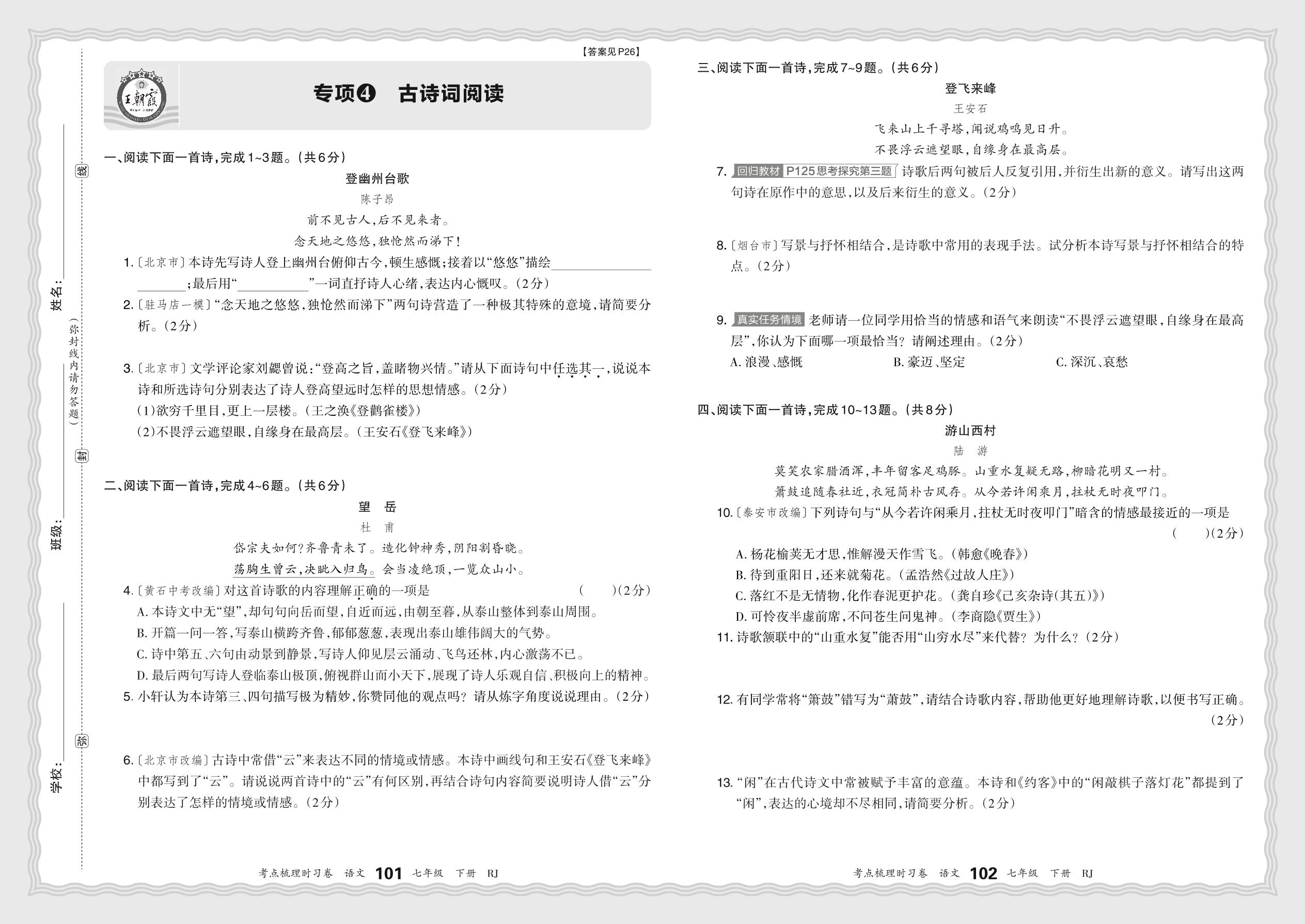2024春下册七年级语文人教版 期末专项卷KD版·古诗词阅读【4】
