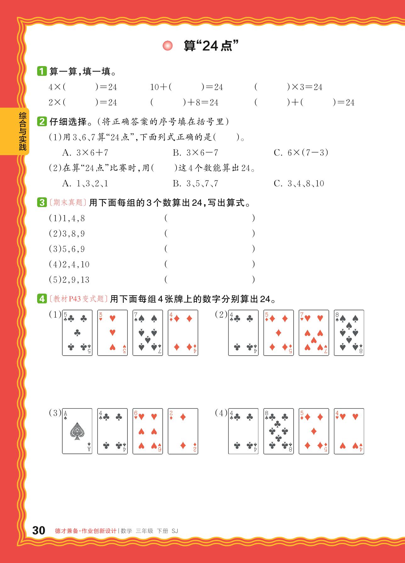 2024春下册三年级数学苏教版 综合与实践——算“24点”