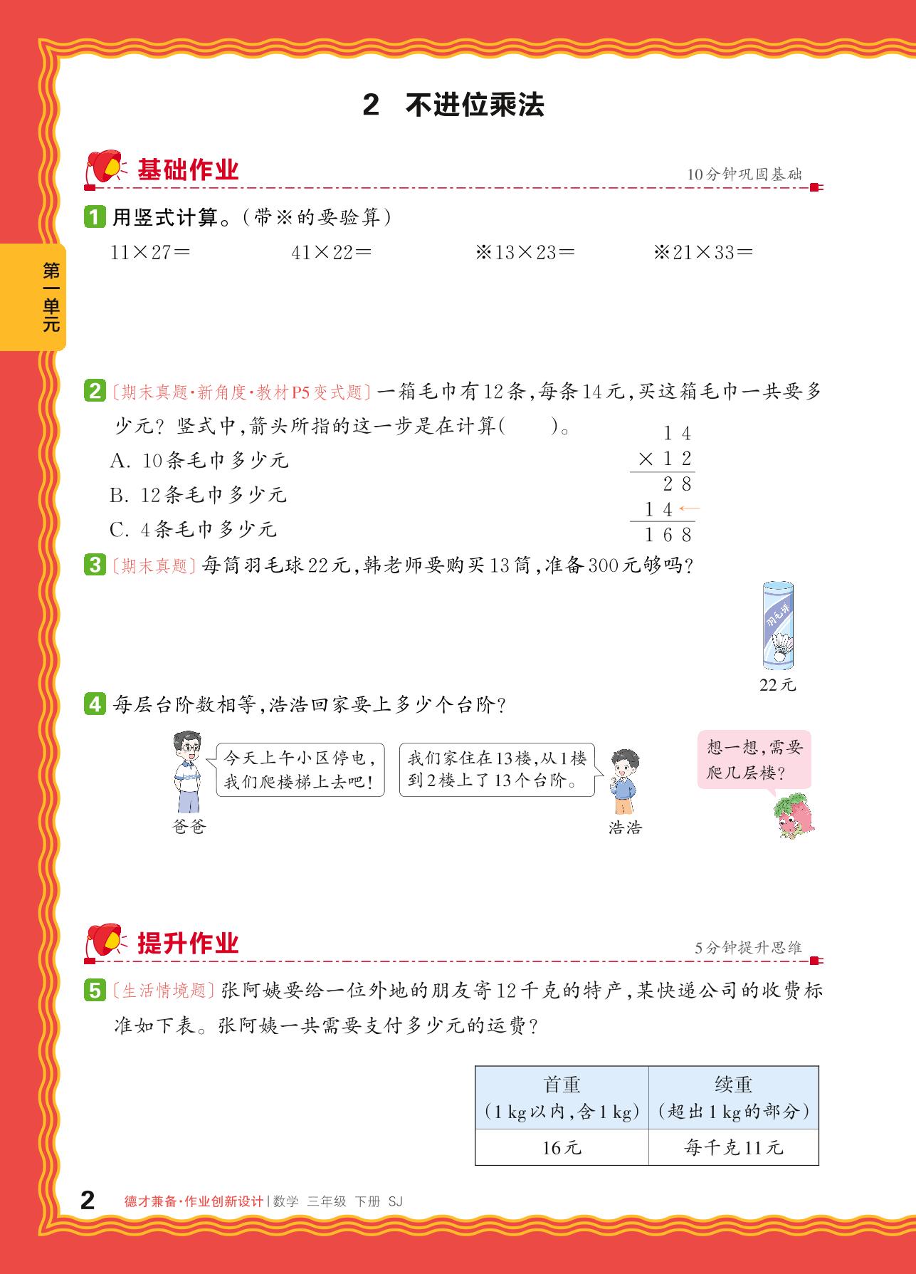 2024春下册三年级数学苏教版 第一单元 两位数乘两位数——2. 不进位乘法