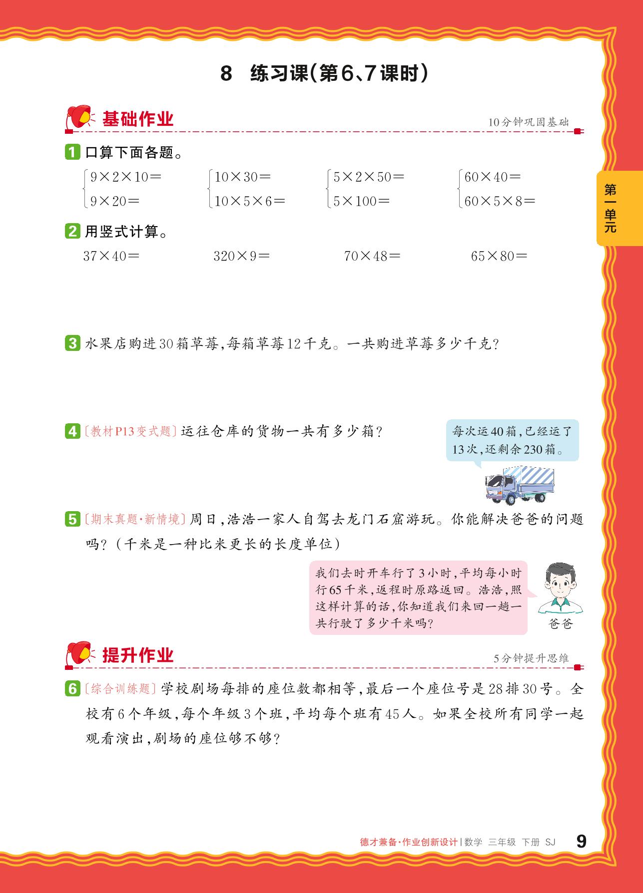 2024春下册三年级数学苏教版 第一单元 两位数乘两位数——乘数末尾有0的乘法、用两步连乘解决实际问题练习课_R