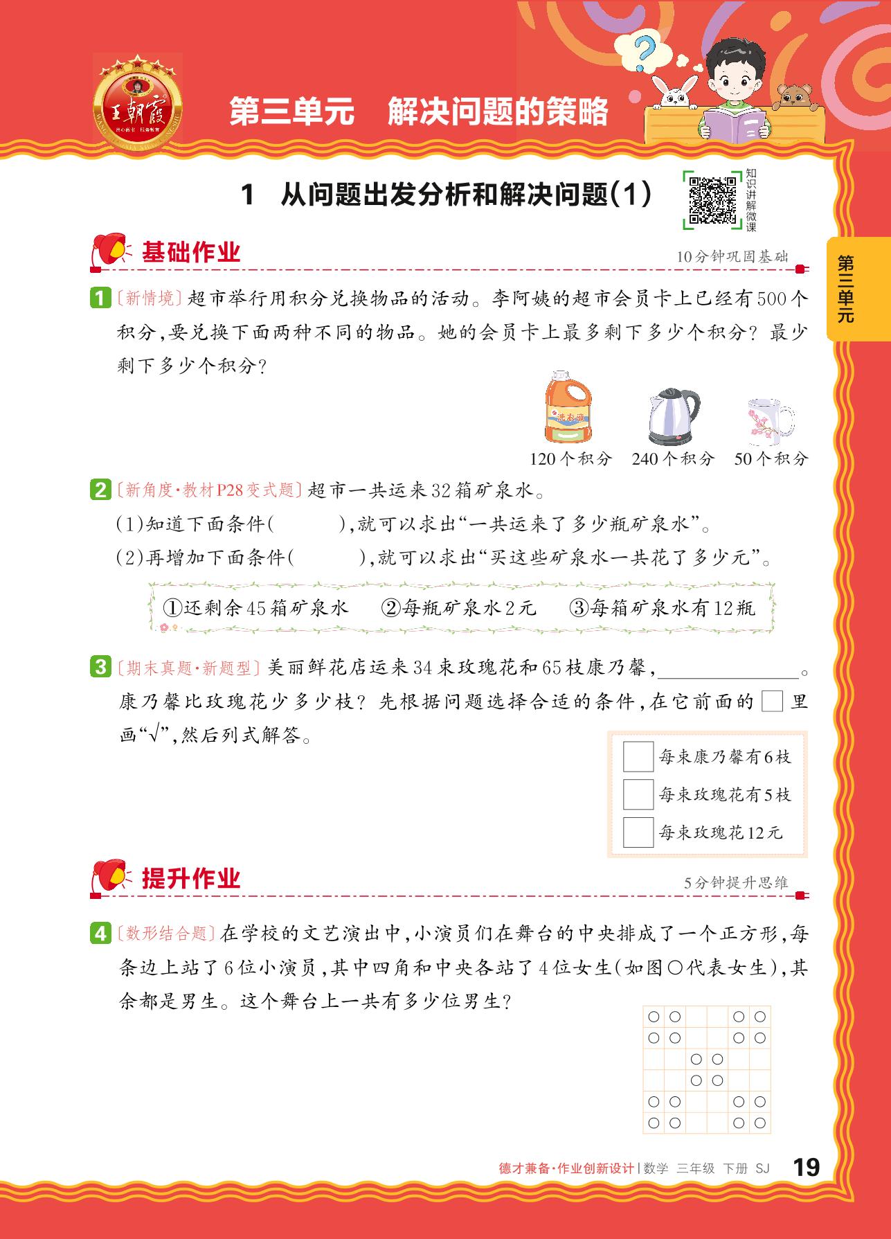 2024春下册三年级数学苏教版 第三单元 解决问题的策略——1. 从问题出发分析和解决问题(1)